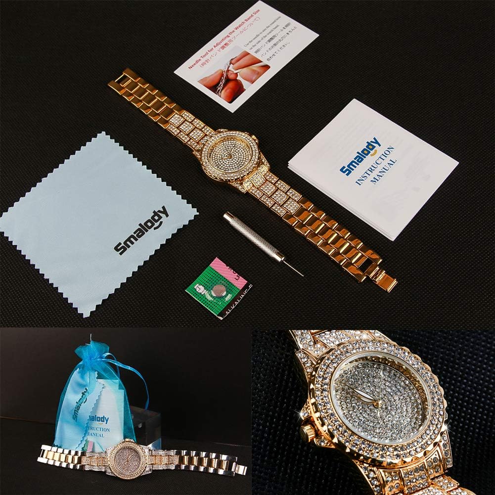 Smalody Round Luxury Women Watch Crystal Rhinestone Diamond Watches Stainless Steel Wristwatch Iced Out Watch with Japan Quartz Movement for Women | Simulated Lab Diamonds