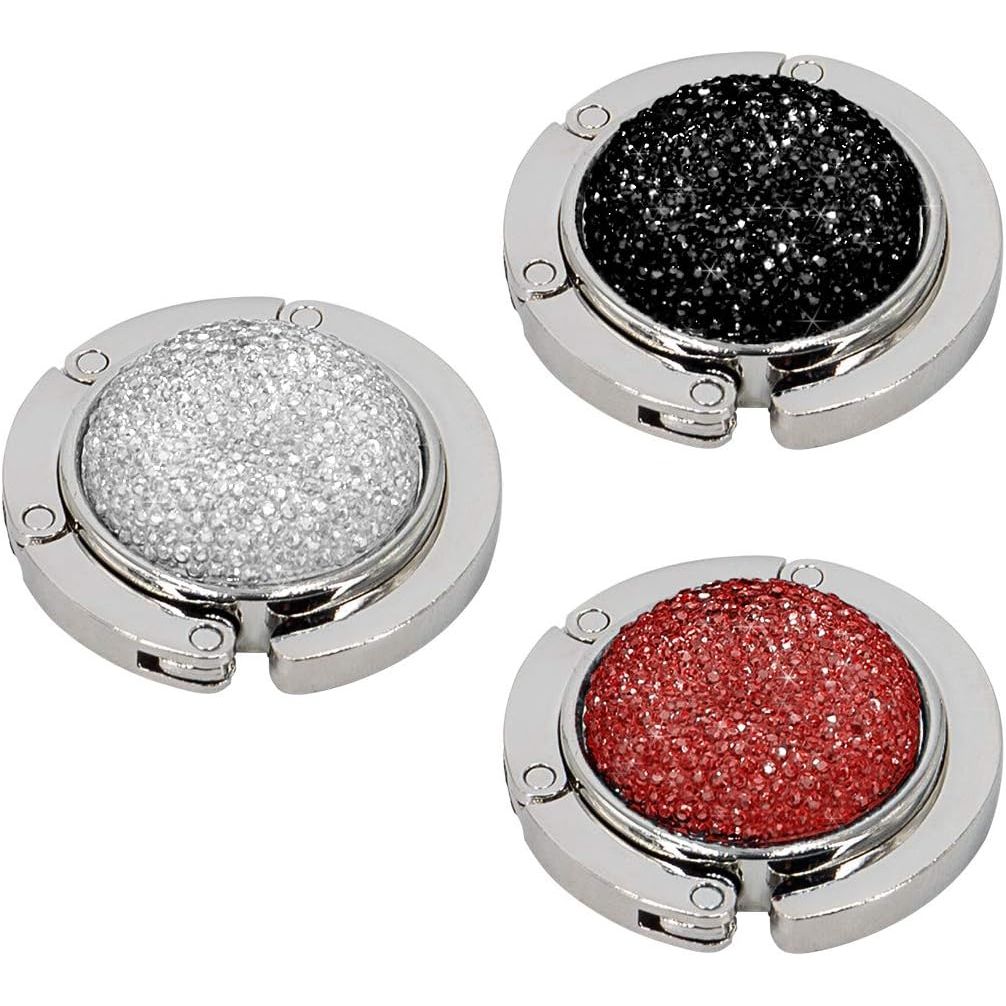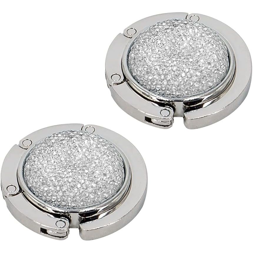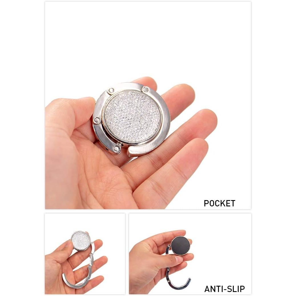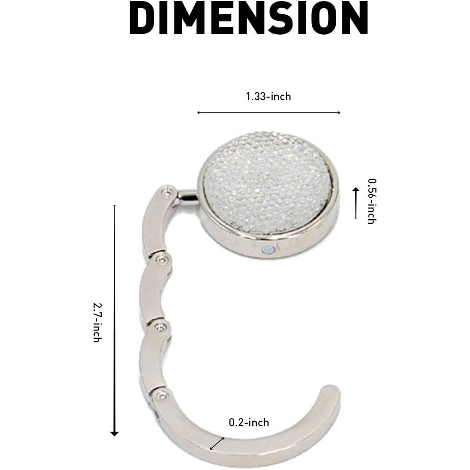 - Material: Our purse hooks are made of zinc alloy and color rhinestone series, the disc of handbag hanger is made of anti-slip rubber which can prevent it from slipping on smooth or hard surfaces.