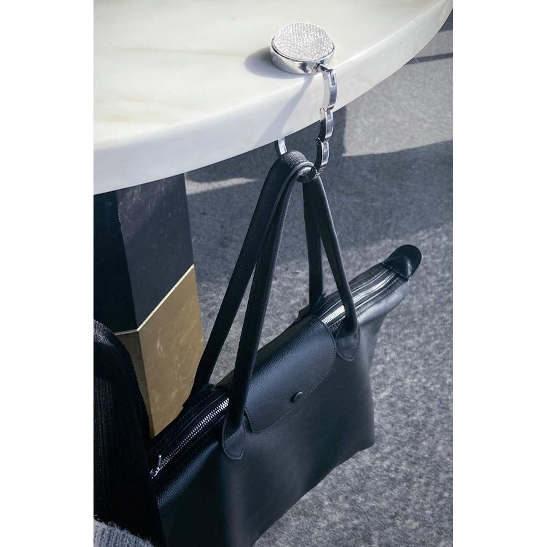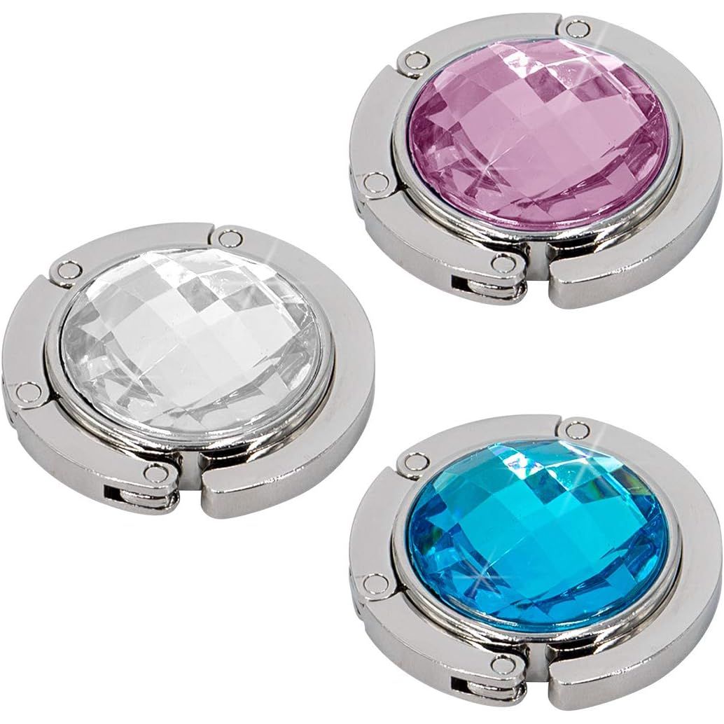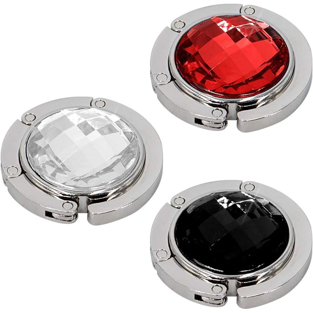 - Material: Our purse hooks are made of zinc alloy and color rhinestone series, the disc of handbag hanger is made of anti-slip rubber which can prevent it from slipping on smooth or hard surfaces.