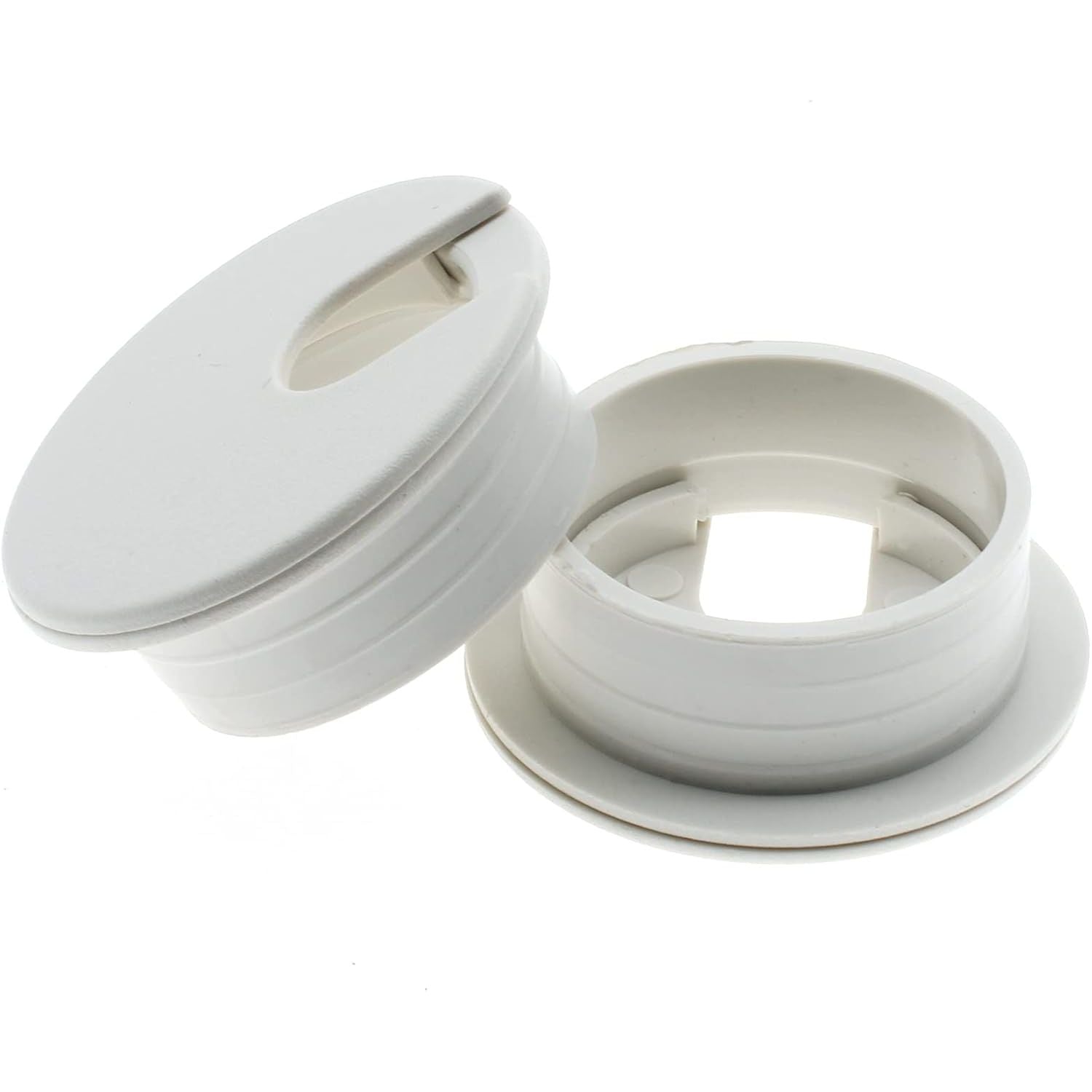 Specifications: Material: Plastic Color:white Mounting hole diameter: 1-3/8 inches (35mm) Overall diameter: 1.73 inch (44mm) Total height: 0.63 inch (16mm) Feature 1: Easy to install. After punching the hole, put the grommet directly into the hole and begin to hide all cables and wires. Feature 2: Removable lid to fit most wires. Feature 3: Decorate the desktop better, and keep desk clean and tidy. Note: Manual measurement, please allow small reasonable error. You will received: 2pcs Desk Grommets
