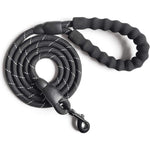 - 10 FT Strong Dog Leash Extra Heavy Duty Rock Climbing Rope Comfortable Padded Handle Highly Reflective Threads for Small Medium Large Dogs, 1/2 inch Diameter (Black Black)
