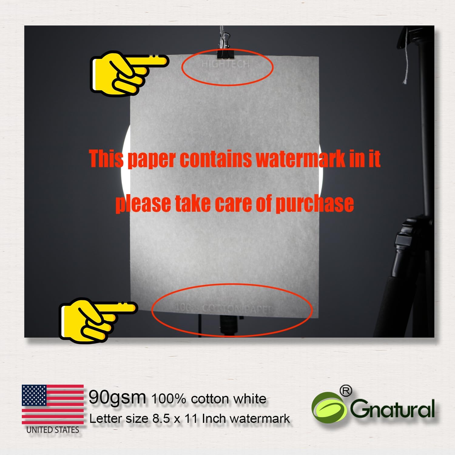 - 100% Cotton Paper,8.5 x 11 inch Business Paper, 24lb Inkjet Laser Printing Paper, White Color Waterproof Watermark Paper - 100 Sheets Low Starch