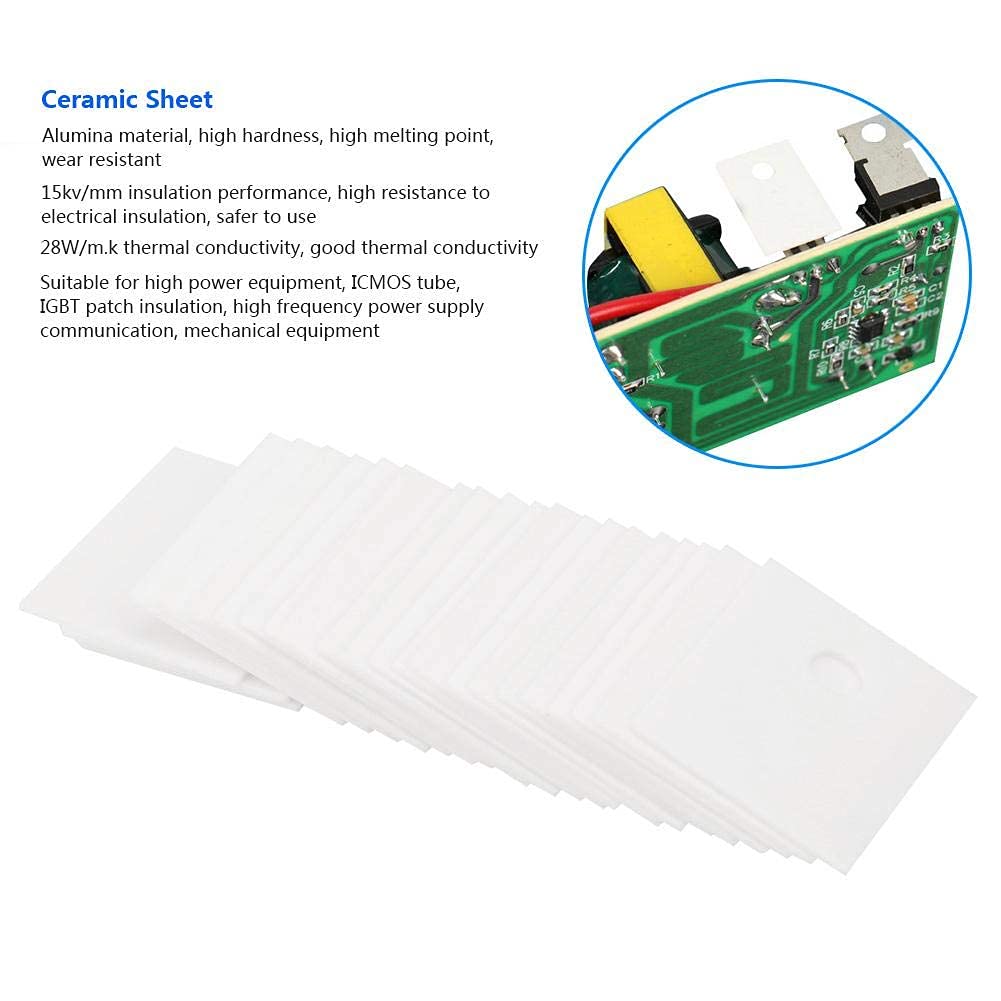 - 100 Pcs TO-247 17 x 22 x 1mm Alumina Ceramic Insulating Sheet High Hardness Excellent Wear MOS Transistor IGBT Cooling Pad with 3.7mm Hole