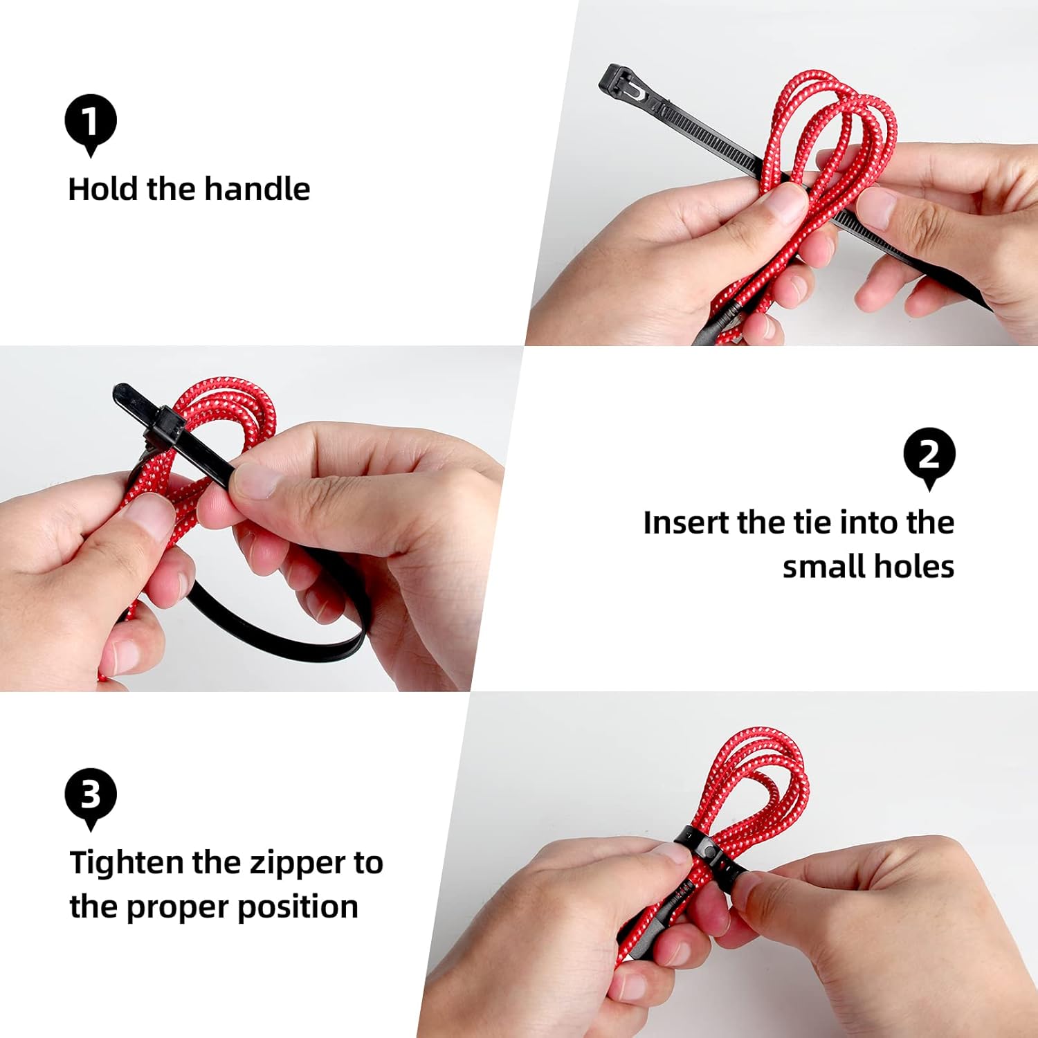 - Self-Lock Design and powerful lock: You can easy to tie wrap your stuff and prevent snagging and easy to loosen and reuse when you need to change/add/delete something.