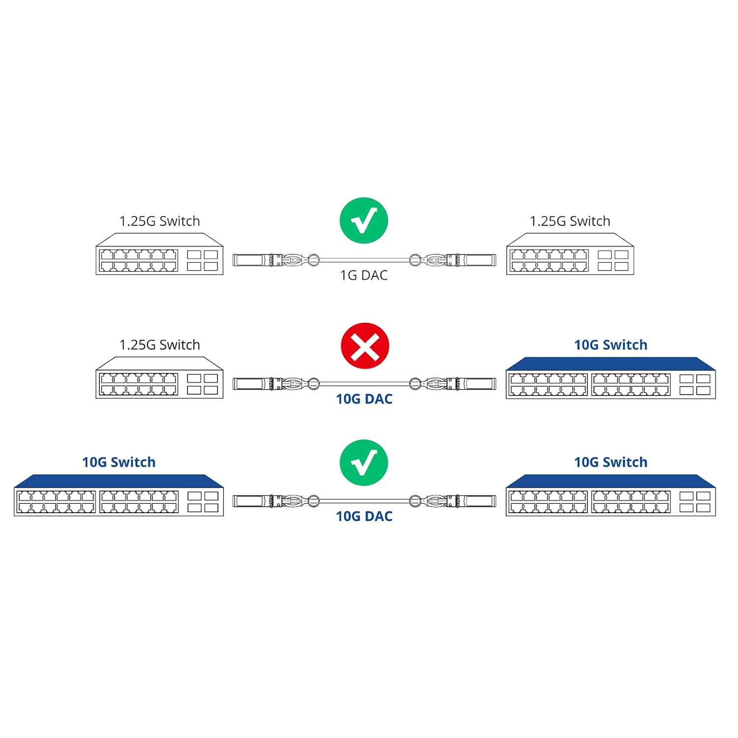 - 10Gtek 1.25G SFP DAC Twinax Cable - Gigabit Passive Direct Attach Copper Twinax SFP Cable for Cisco SFP-1GBASE-CU2M, Ubiquiti UniFi, Fortinet, Netgear, TP-Link and More, 2-Meter(6.6ft)