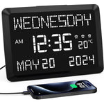 11.5” Digital Wall Clock with Date,Time,Week,Indoor Temperature,3 Alarms,5 Dimmer,2 USB Chargers,Battery Backup,Snooze,12/24H for Elderly,Parents,Impaired Vision,Dementia,Memory Loss,Office,Bedroom