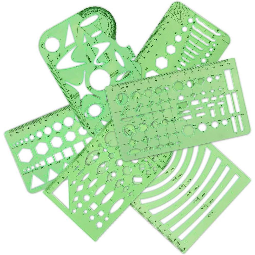 - 11 Pieces Geometric Drawings Templates Stencils Plastic Measuring Template Rulers Clear Green Shape Template for Drawing Engineering Drafting Building School Office Supplies