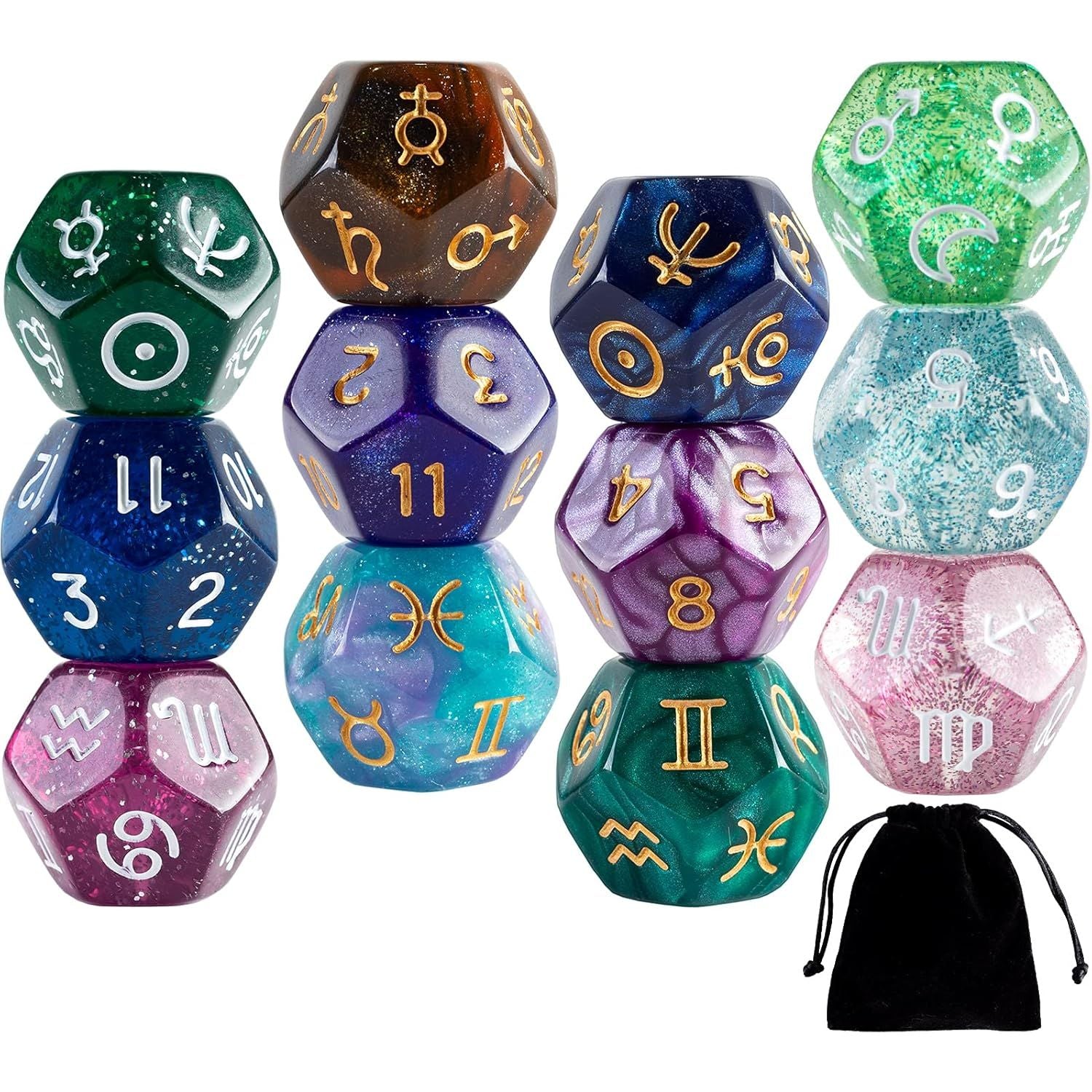 - 12 PCS Tarot Cards Dice D12 Astrological Dice Resin Pearl Constellation Sign 12-Sided Dice for Astro Divination Gaming Accessory