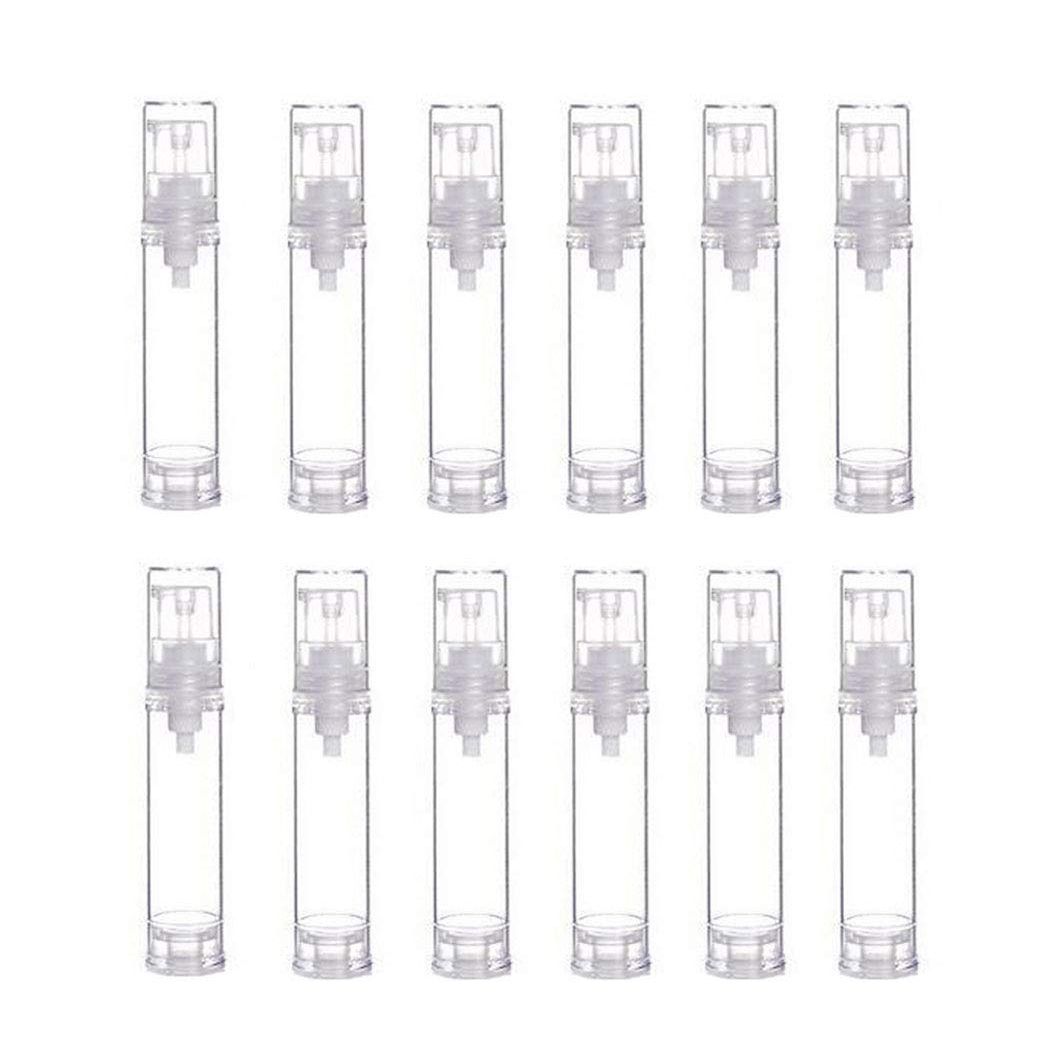- 12PCS 10ML/0.34OZ Portable Plastic Empty Clear Airless Vacuum Pump Bottles Container Cosmetic Cream Lotion Vial Jars Make-up Liquids Sample Packing Storage Dispensing Tins