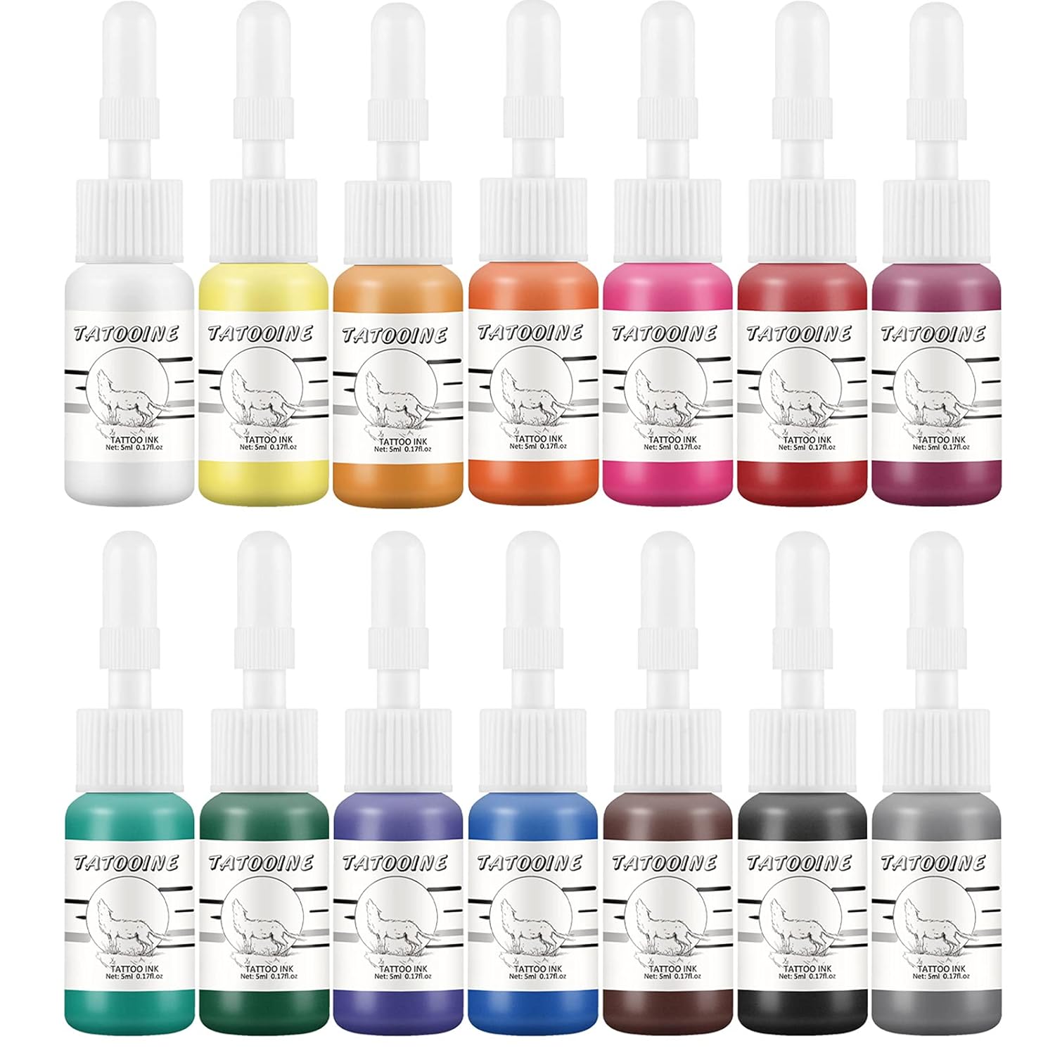 - 14 pcs Tattoo Ink Set 5ml Tattoo Professional Supply Black Color Set Tattoo Ink Red White Tattoo Ink Tattoo Pigment Set for Body Art Long Lasting