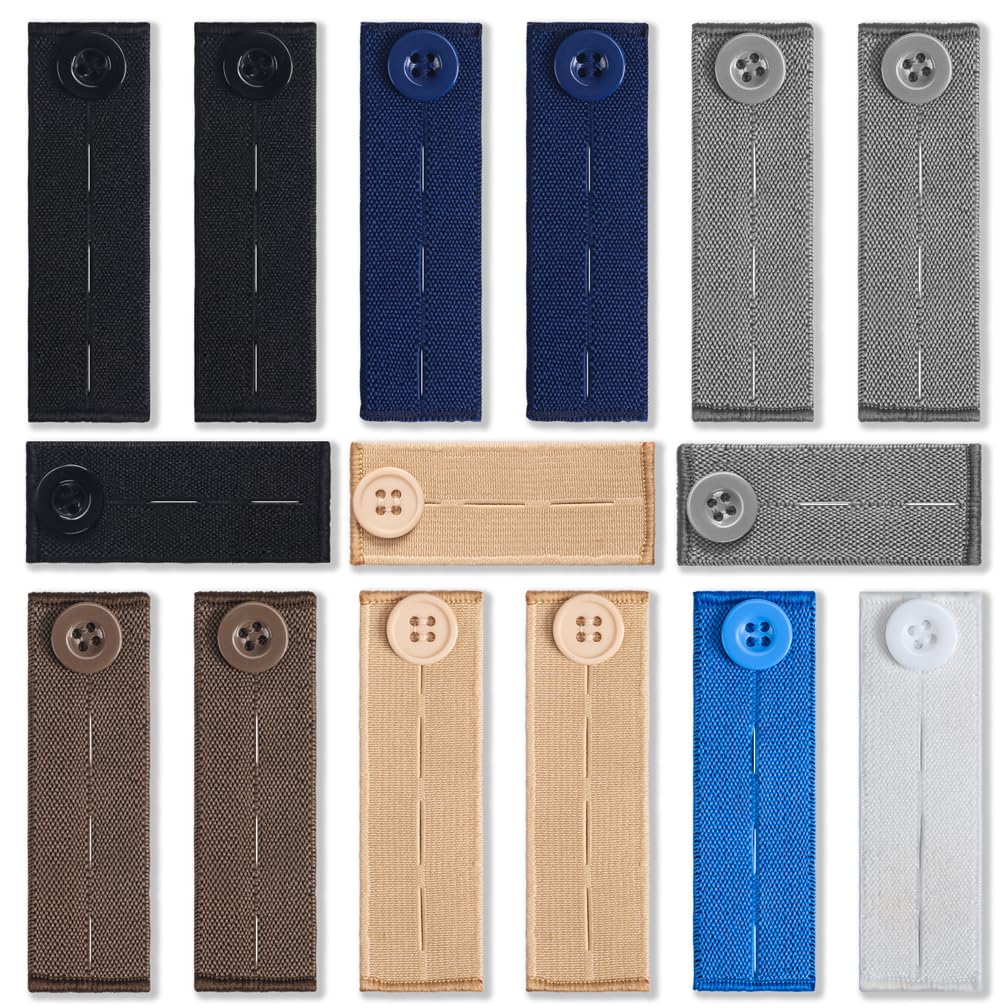 - 7-Color Pants Waist Extender: Includes 3 Pcs black, 3 Pcs khaki, 3 Pcs gray, 2 Pcs dark blue, 2 Pcs brown, 1 Pcs white, and 1 Pcs sky blue waist expanders. These pants button extenders are perfect for matching with various pants. They are waist extenders specifically designed for jeans, slacks, work pants, uniform pants and trousers.