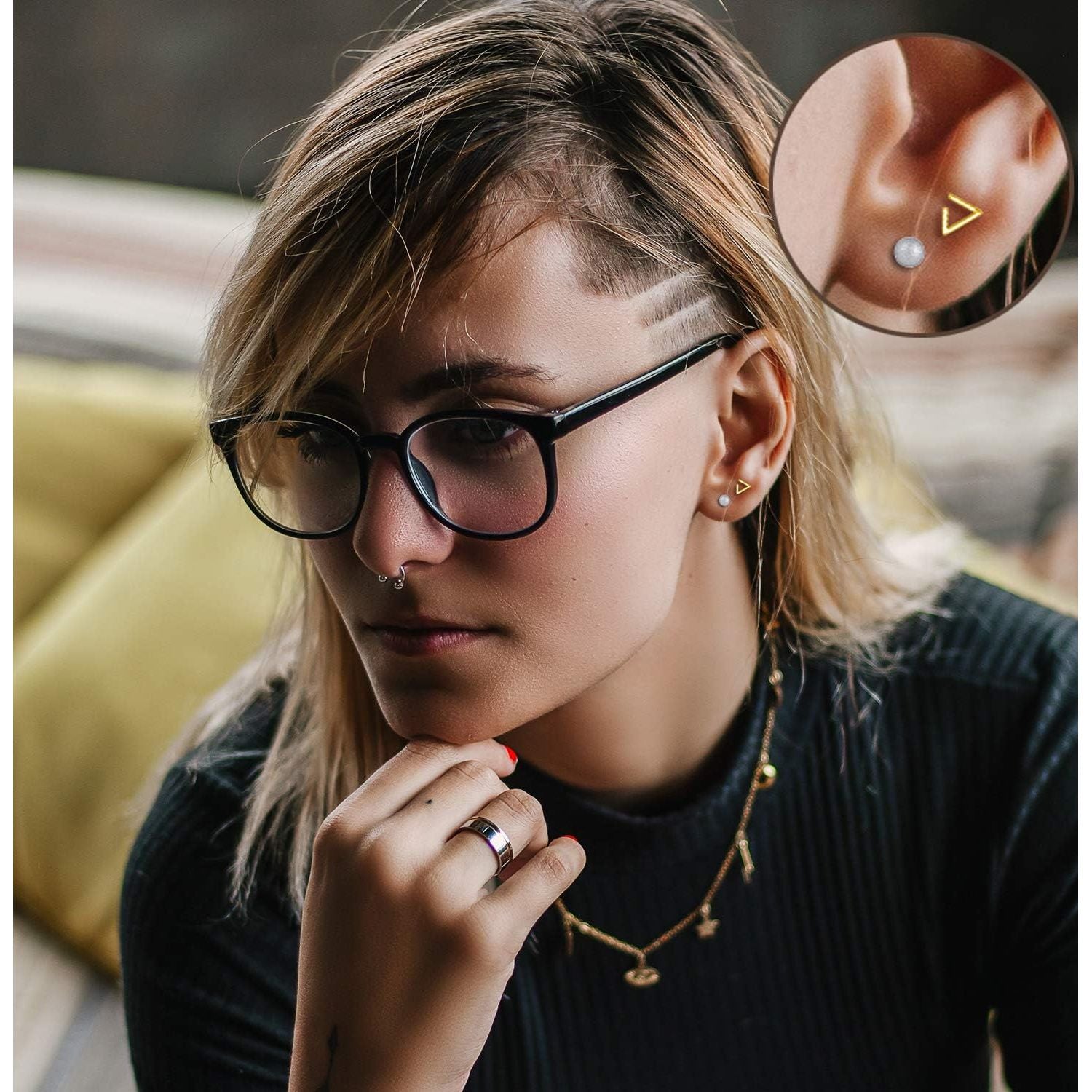 - Small Stud Earrings for Women Size — Ball/round CZ: 3mm, heart/triangle/square CZ:4mm, lightning:3*7mm, cross:3*5.5mm, moon:2*6.5mm.20g(0.8mm) pin thickness, post length:10mm. Flat back cartilage earrings are well-fitted and stackable, making them a solid choice for individuals with multiple ear piercings.