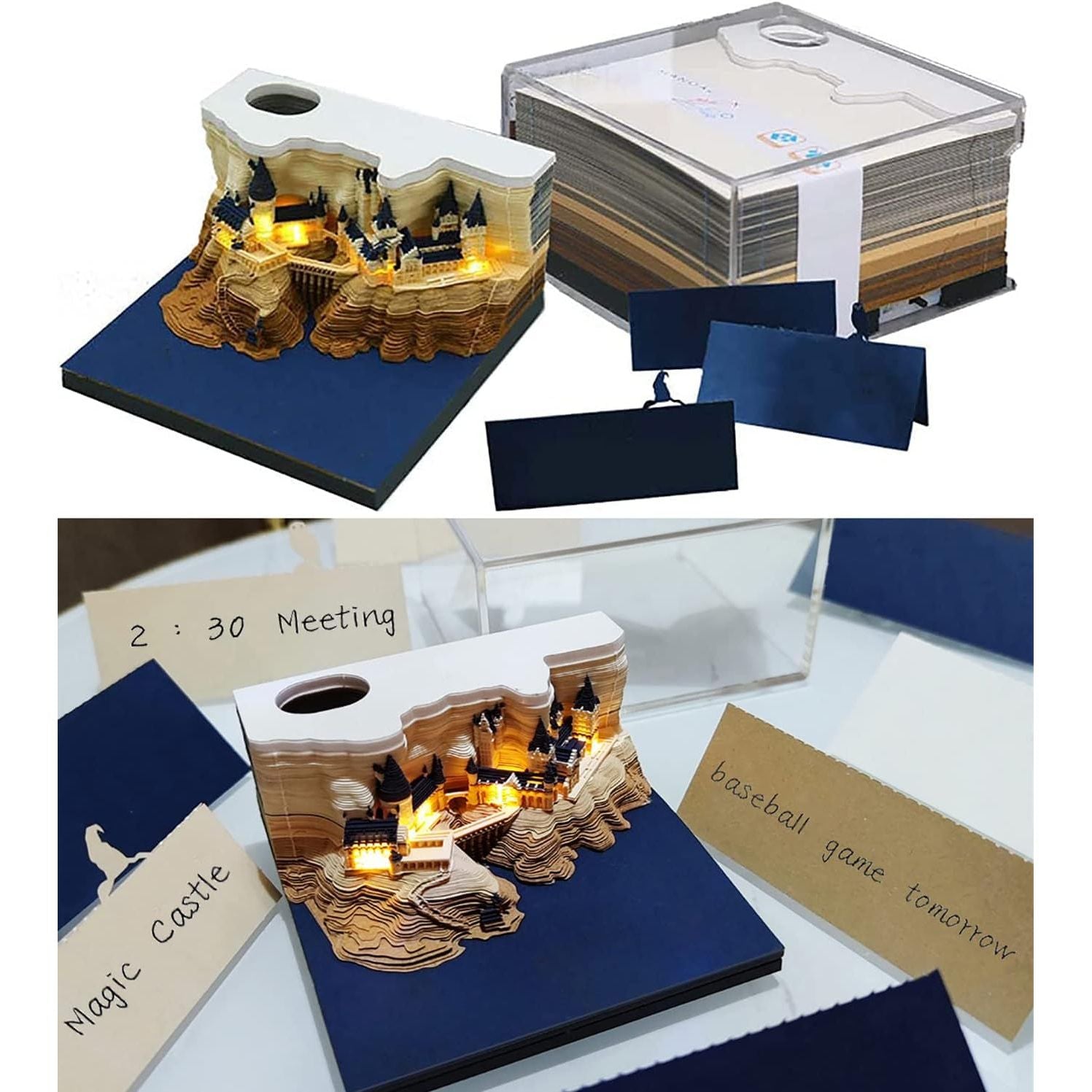 - 1Pc 160 Sheets Memo Pads Paper Art with Light, Castle 3D Stick Notes Convenience Stickers Papers Card Craft, Original DIY Post Notes Notepad
