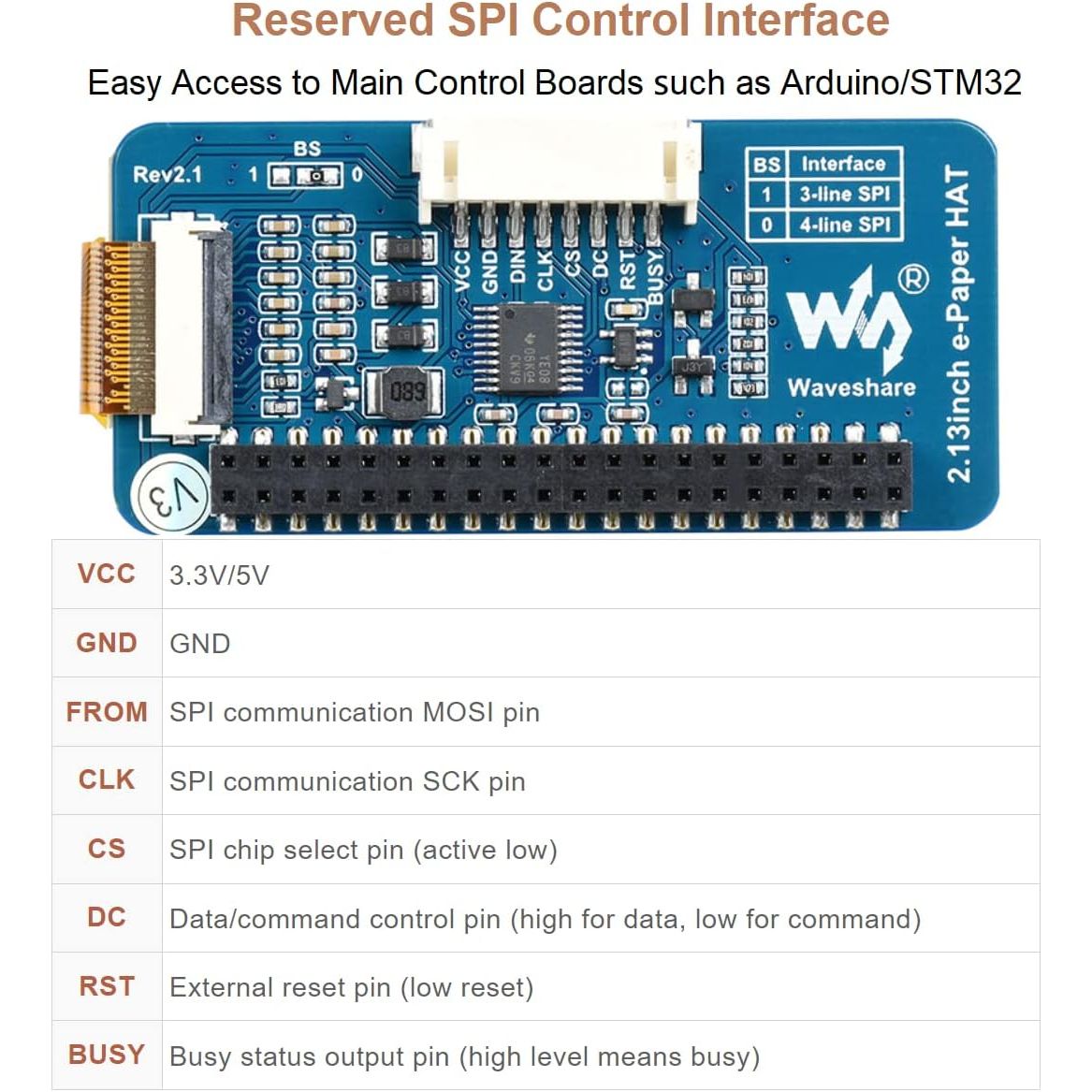 - 2.13inch E-Ink Display HAT V4 Version, 250x122 Resolution 3.3V/5V Black White Two-Color e-paper Screen Module for Raspberry Pi Zero/Zero W/Zero WH/2B/3B/3B+/4B, Supports Partial Refresh, SPI Interface