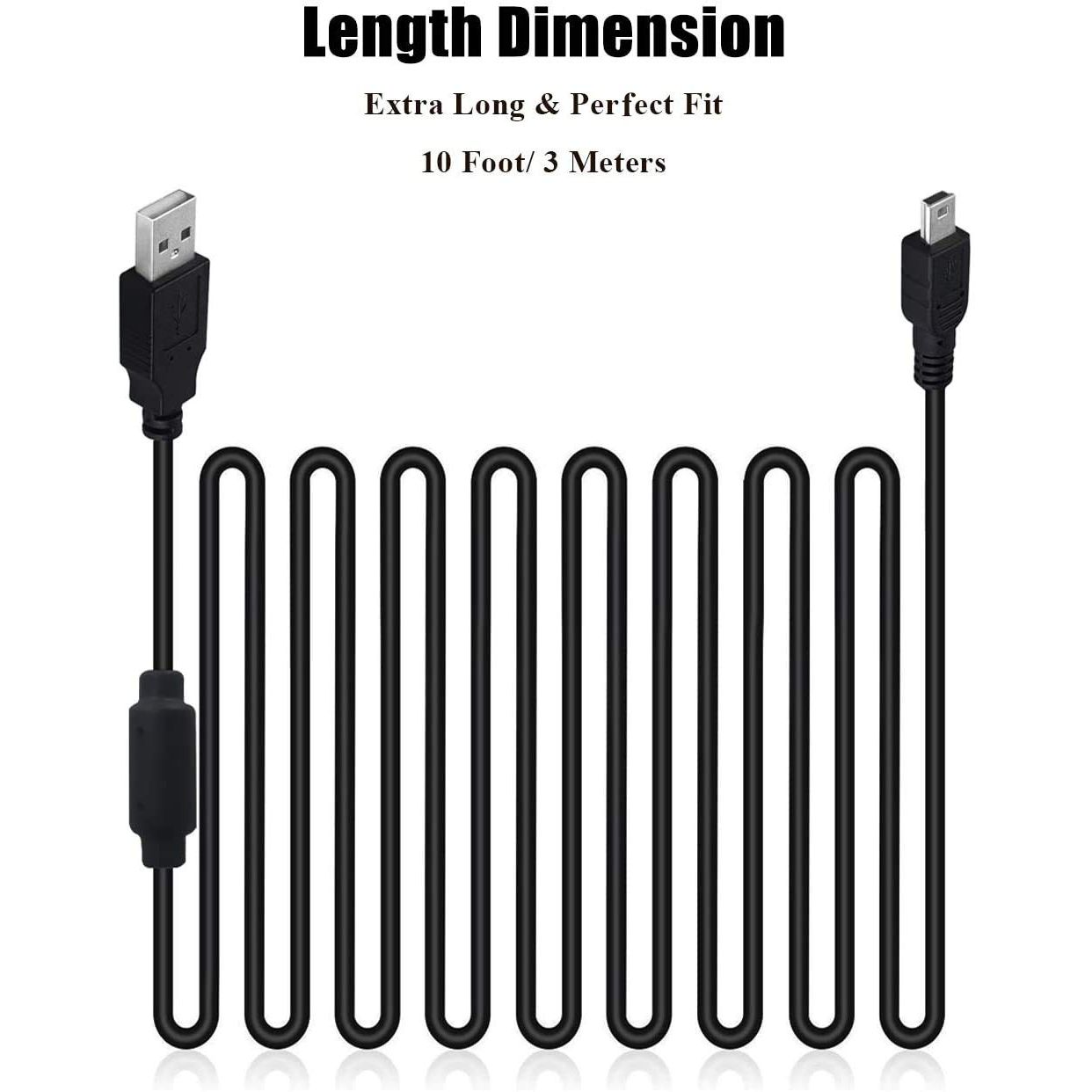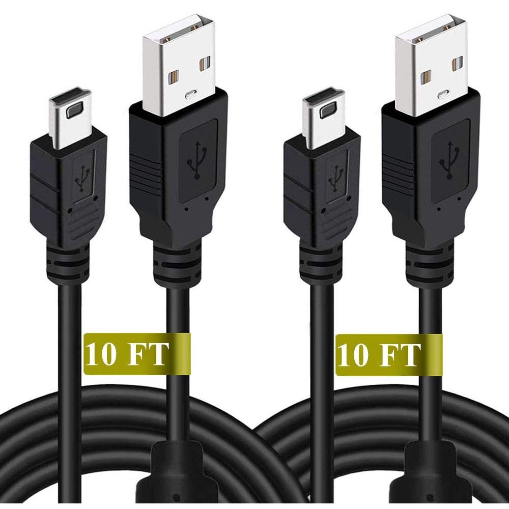 - 2 Pack 10ft PS3 Controller Charger Cable - Fast Mini USB Data Charging Cord for PS Move PlayStation 3 Wireless Controller, TI84 Plus CE, Digital Camera