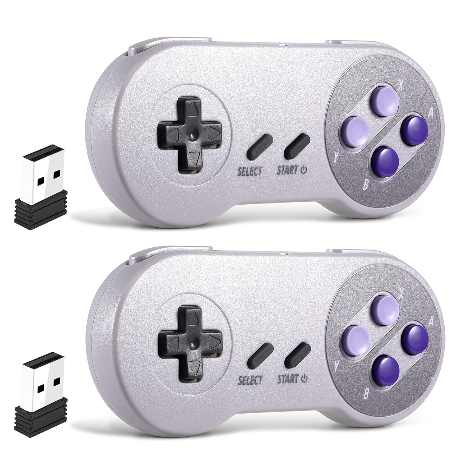 - 2 Pack 2.4 GHz Wireless USB Controller Compatible with SNES Games, SNES Retro USB PC Super Classic Controller for Windows PC MAC Linux Genesis Raspberry Pi Retropie (Multicolored Keys)