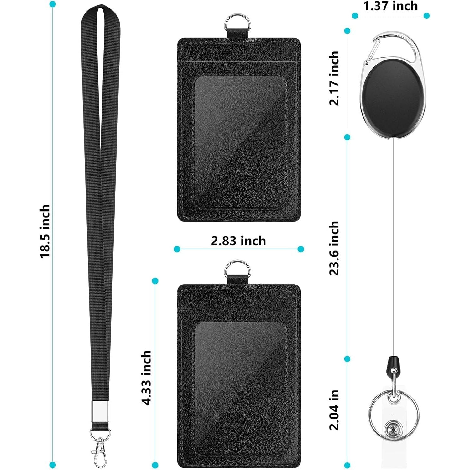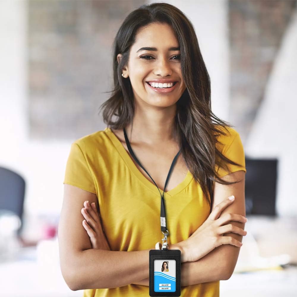 - 2 Pack Badge Holders, Vertical PU Leather ID Badge Card Holder with Detachable Neck Lanyard Strap and Retractable Badge Reel ID Card Holders Set