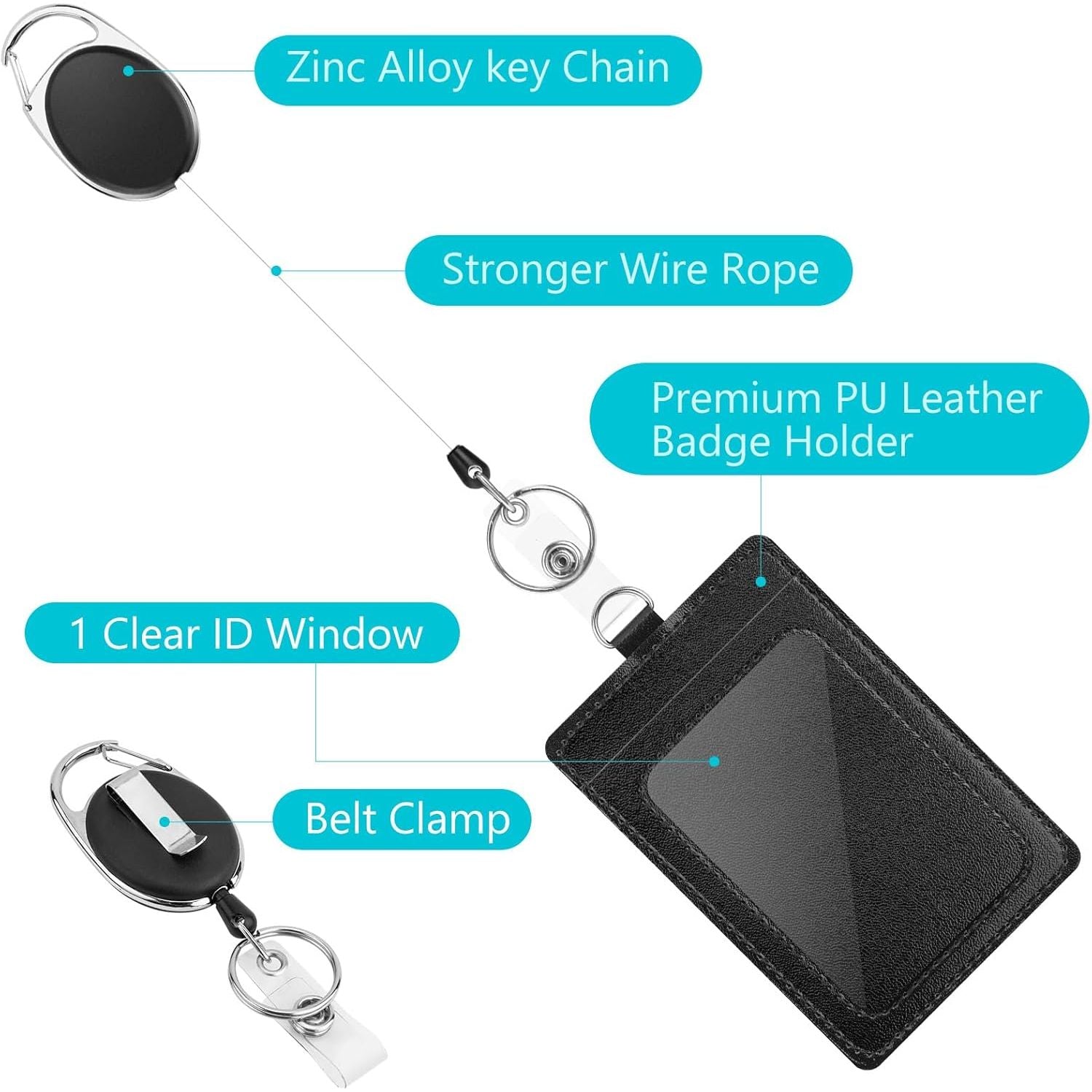 - 【Heavy Duty and Convenient】Our badge holder is crafted from premium-quality metal, ensuring durability. It features a built-in drawstring that retracts automatically for easy use and quick spring-back. With an extension of up to 23.6 inches, you can conveniently swipe cards or unlock doors without needing to remove the badge holder or keys