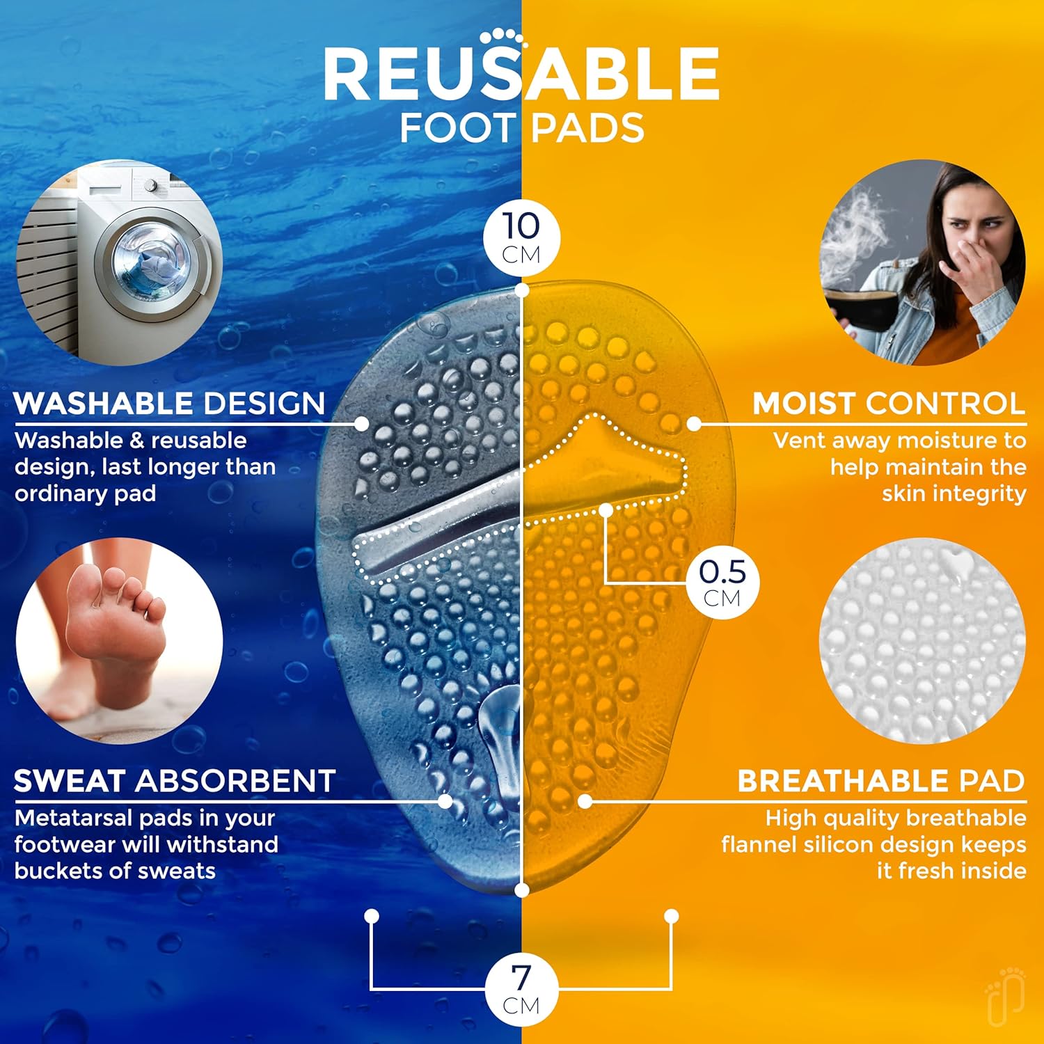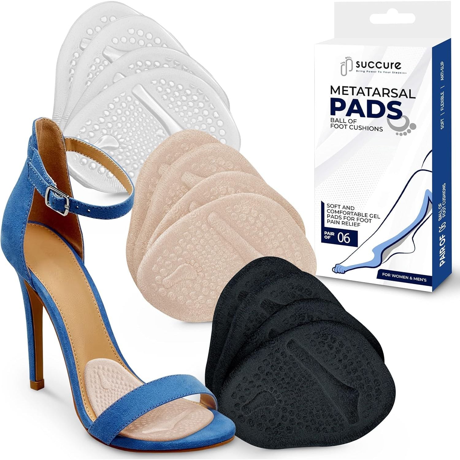 Made of durable, soft & safe grade silicone. Succure ball of foot pain cushions are made up of breathable flannel that can absorb sweating therefore no unpleasant odor even after long day use.