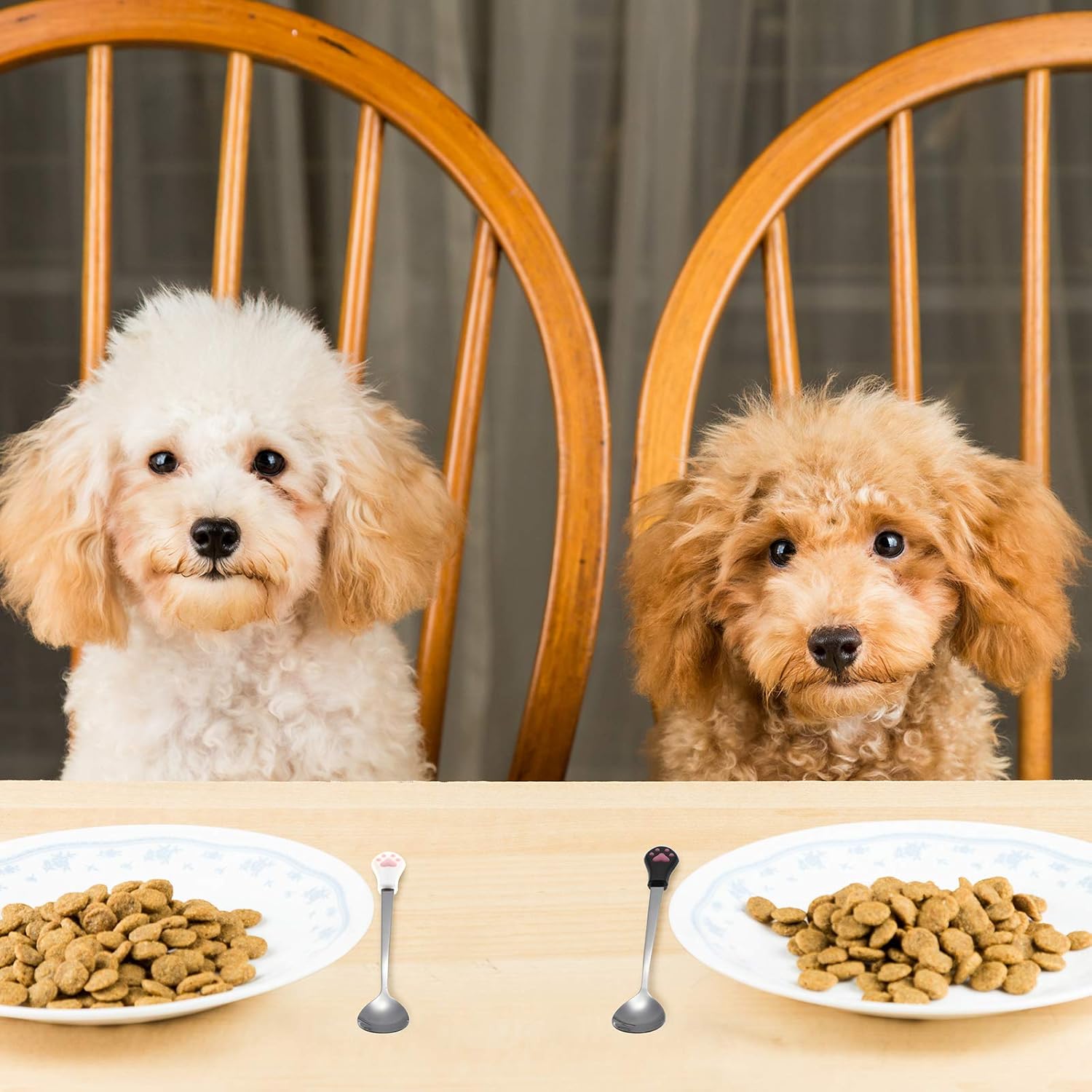 - "You will receive: the package includes 2 pieces stainless steel pet food spoons in black and white color; Each color has 1 pet food spoon, which are sufficient for you to use"