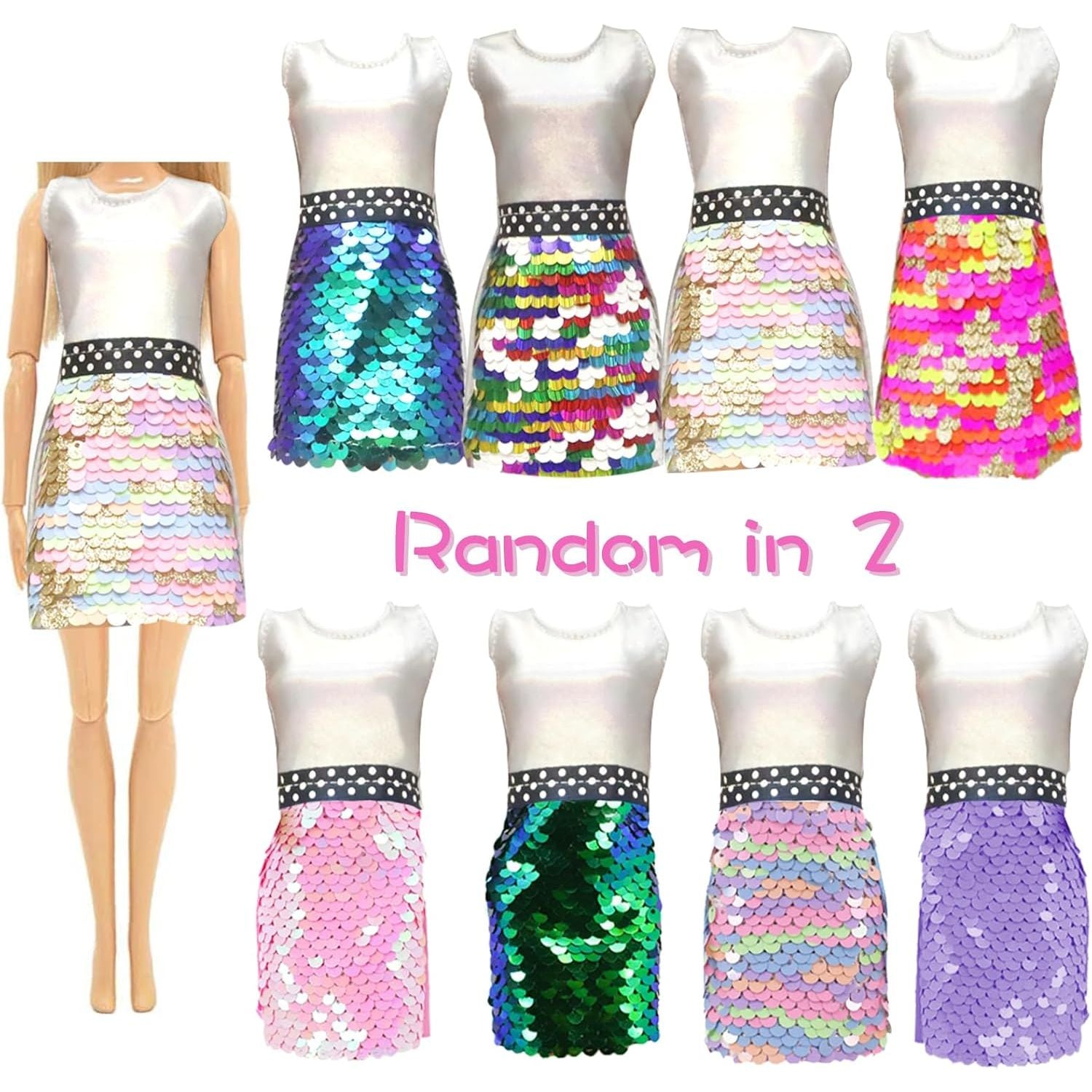 - 【Package Including】 2 Sequins Dresses 4 Fashion Dresses 4 Casual Outfits Tops and Pants 10 pair of Shoes in one vacuum bage, in random style.