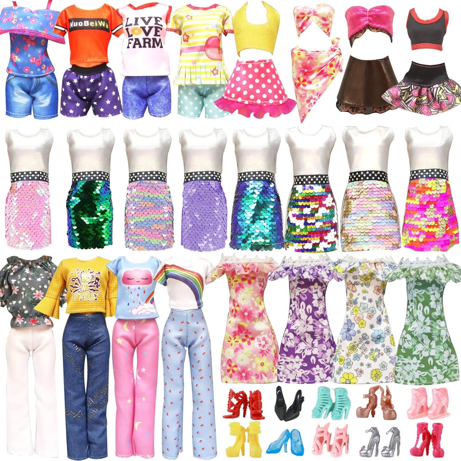 - 20 Pcs Doll Clothes and Accessories Handmade 2 Sequins Dresses 4 Fashion Dresses 4 Tops and Pants Casual Outfits 10 Shoes for 11.5 inch Girl Dolls
