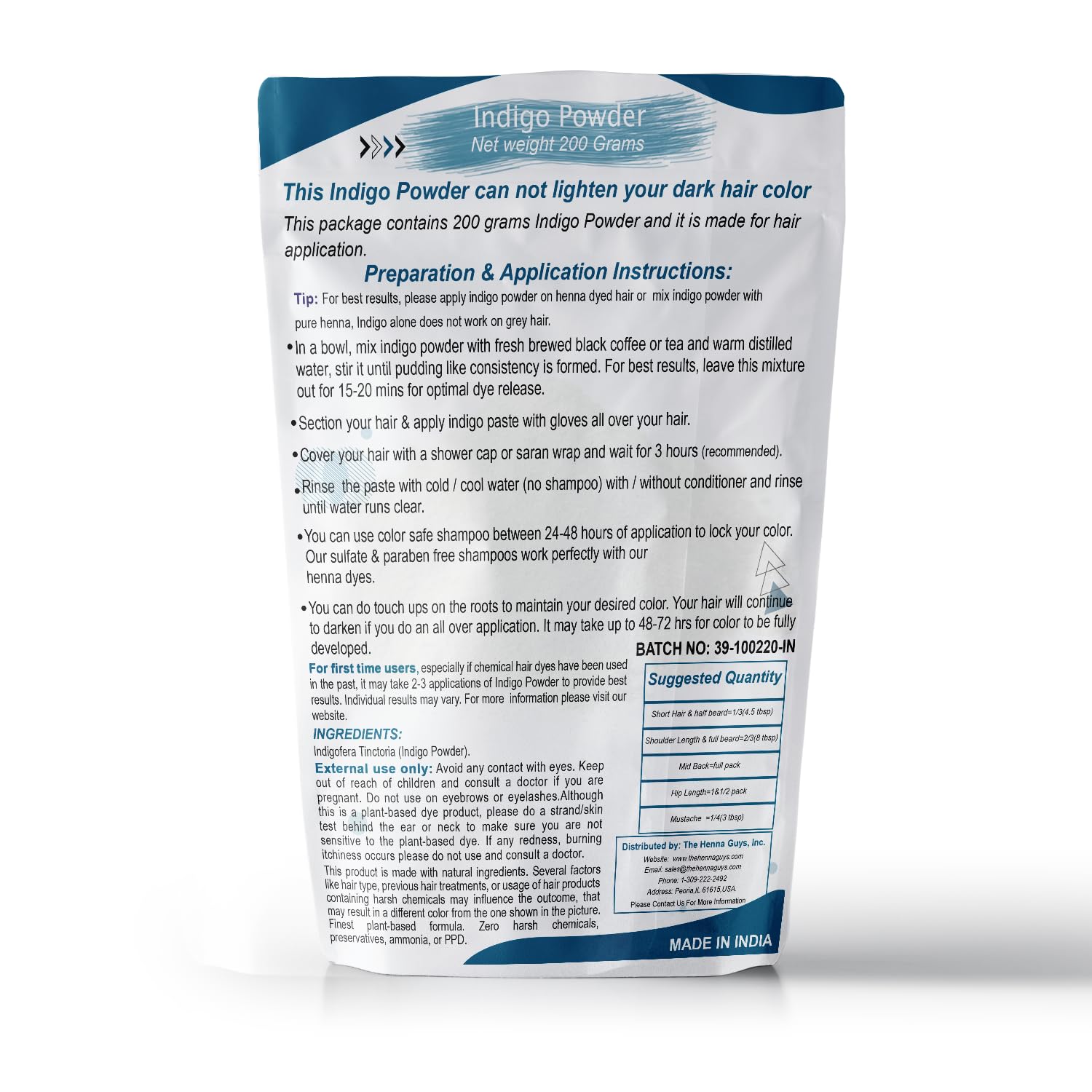 - 200 Grams INDIGO POWDER For Hair Dye/Color - The Henna Guys