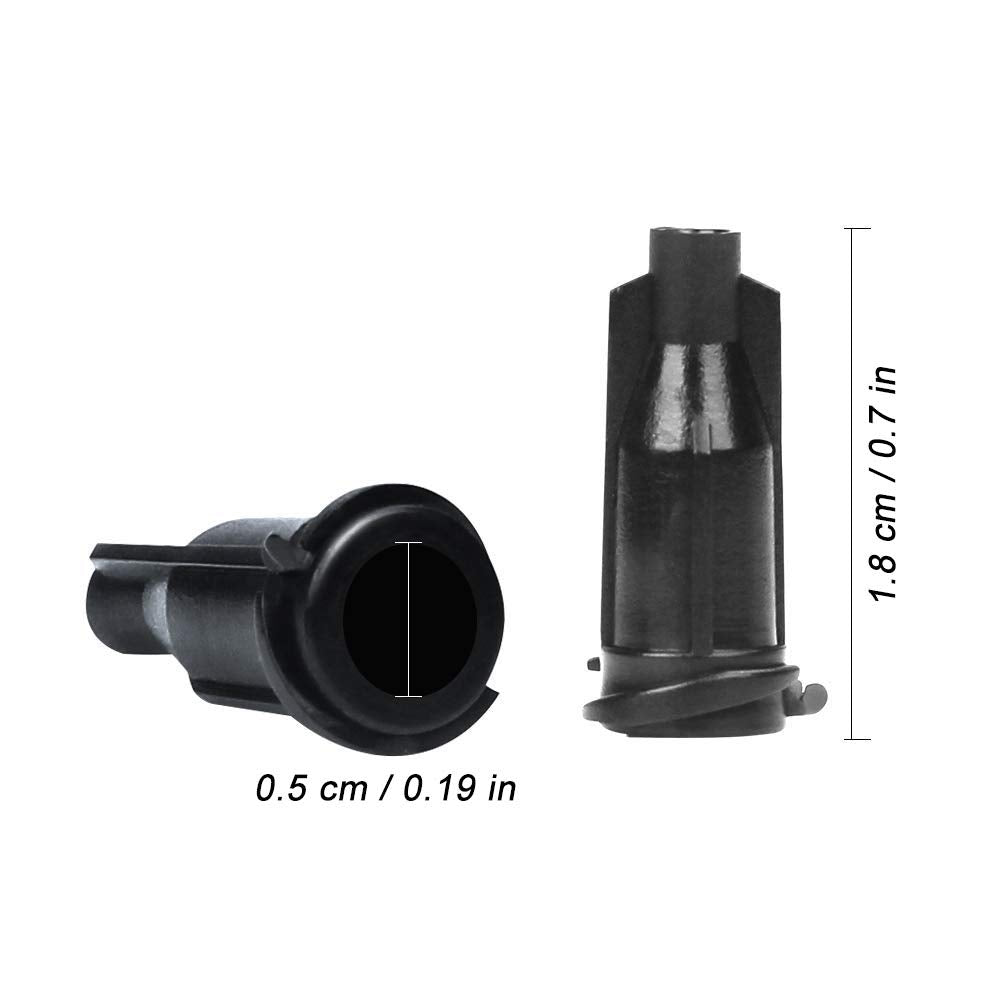 Onwon 200 Pieces Luer Lock Syringe Screw Type Tip Caps Dispensing Needle Tip Cap These caps to close syringes and keep liquid or glue not spilling. Syringe screw type tip caps are locking in to the tip of syringe. These dispensing needle tip caps also can be always using for craft and industrial work. Our cap is suitable for syringes of various specifications, practical, you can order with no worry. Specification: Color:Black/White/Blue/Orange Material: plastic Size: high: 1.8 cm, thread diameter: 0.76 cm, the inner size of connector is 0.5 cm Package includes: 200 x Luer Lock Syring Tip Caps