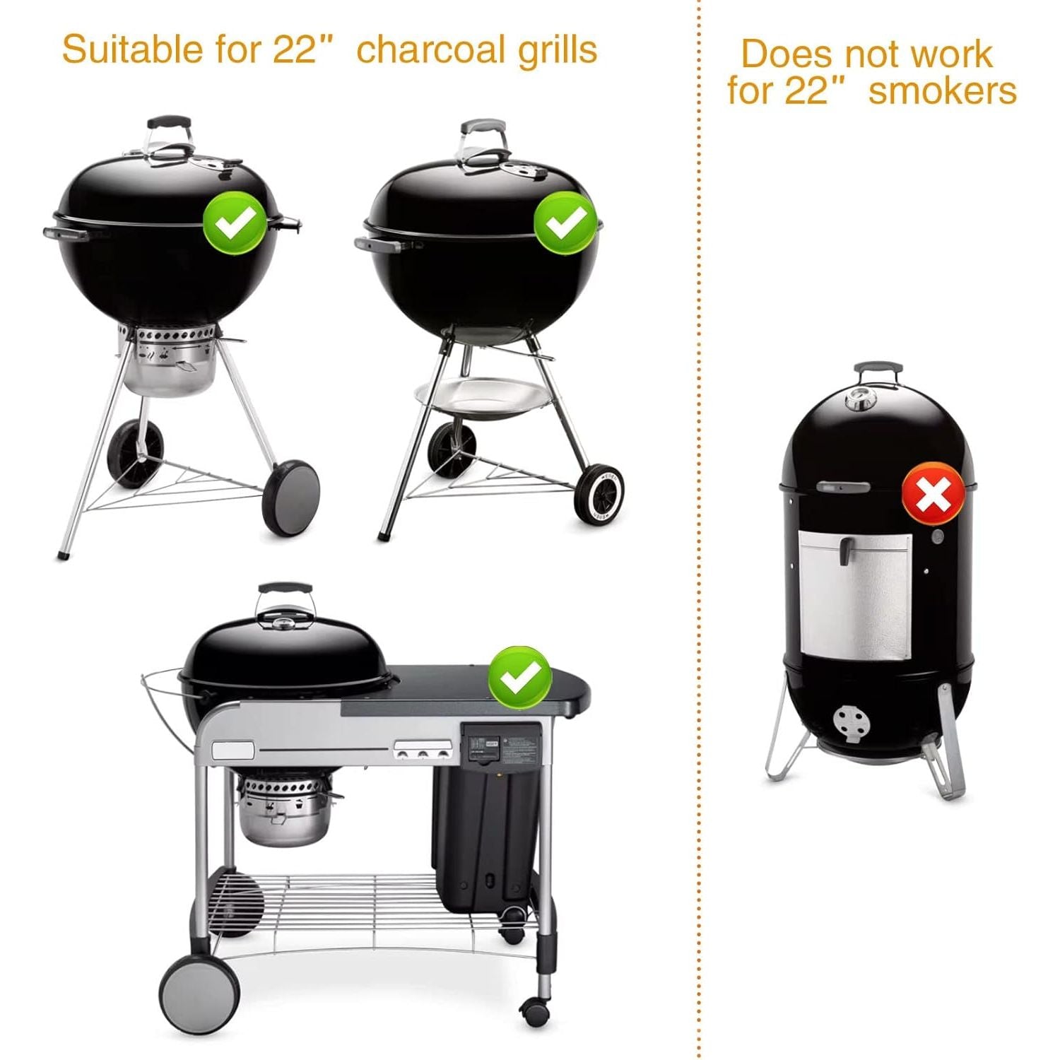 - 【Compatibility】 Size fits, easy to install, best grill replacement parts for 22" kettle grills (Weber Original Kettle 47cm & Original Kettle Premium 57cm), including Weber 22" Original Kettle, Performer Series and Master Touch Series. ▲It isn't recommended to use it on other models (22" Smokey Mountain Cooker, 18" grills or pre-2000 Performer models ect.), as this won't have a good surface match, there would be a gap that would not seal the air from entering and would not clean the ashes very well.