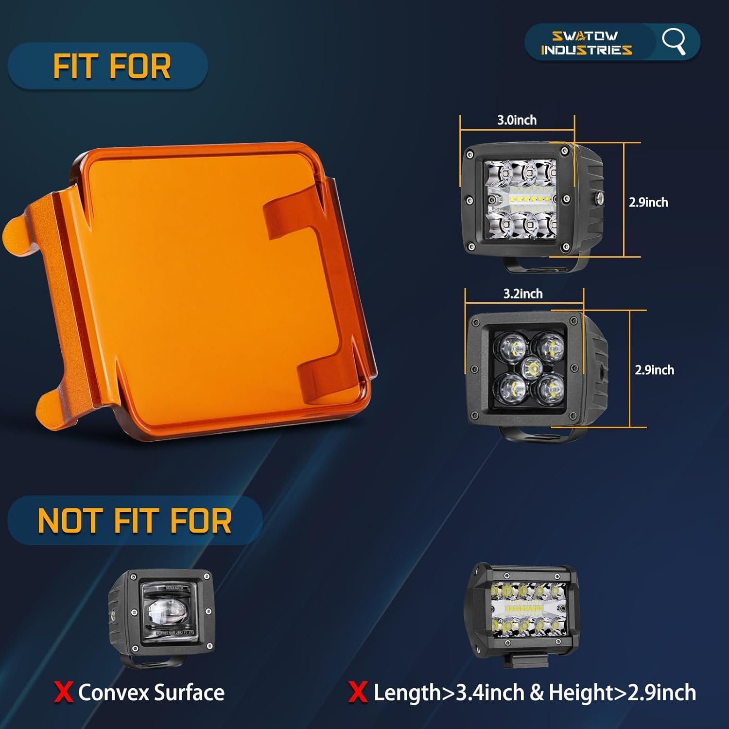 - 2PCS Pod Light Covers Amber 3 Inch LED Light Bar Cover Amber LED Pods 3x3 Square Work Lights Cube Covers Ditch Pods PC Lens Cover