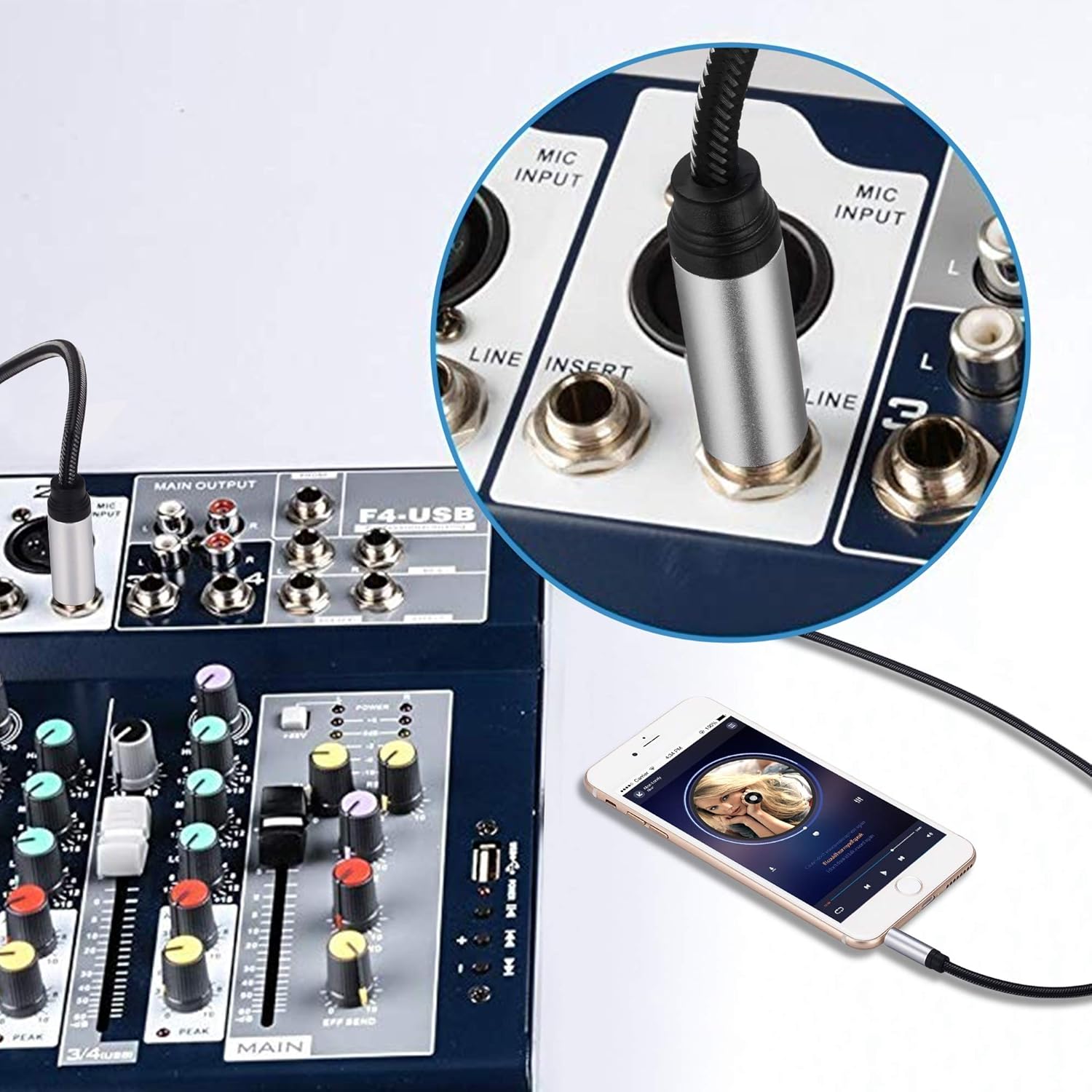 - 3.5 mm to 6.35 mm Audio Cable 10Ft, Gold-Plated Terminal Silver Color Zinc Alloy Housing 3.5mm 1/8" Male TRS to 6.35mm 1/4" Male TRS Nylon Braided Stereo Audio Cable for CellPhone, Amplifiers(10Ft/3M)