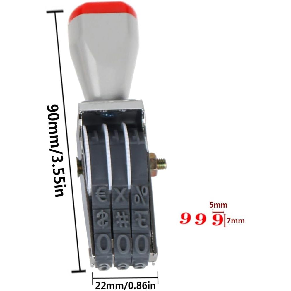 - Traditional 3 digit Number Stamps, Material : Metal, Rubber, Plastic; Size:Length: 90 mm/3.54 in, Width:20 mm/0.78 in,High:25 mm/0.98 in, Character : Width:4 mm /0.15 in,Height:7 mm/0.27 in, Color : Gray black; Weight: 40 g; Package Content : 1 X Numbering Stamp (Without ink,Requires a separate ink pad).