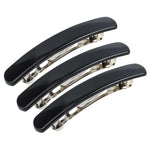 3 Pack Shiny Face Elegant Arched Triple Clipping French Barrettes Bow Tortoise Plastic Cover and Metal Clasp Style Bun Ponytail Clips for Thick Hair Chignon Hair Ornament (2.6" Black 2 Pack)