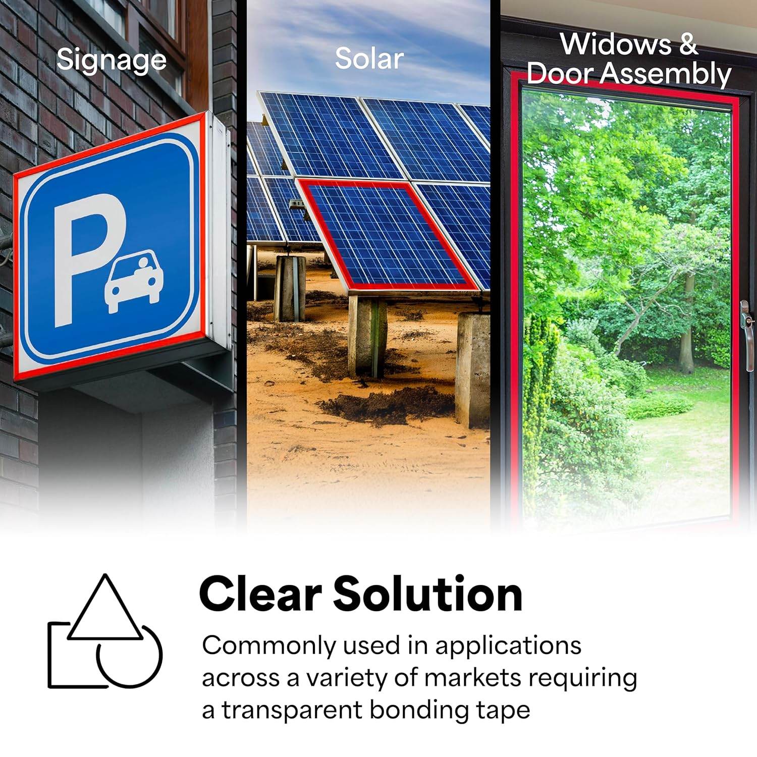 - APPLICATIONS: Used for indoor and outdoor applications, including joining transparent materials, glass or acrylic objects, bonding decorative material and trim, mounting backlit translucent signs, nameplates and logos, and more.