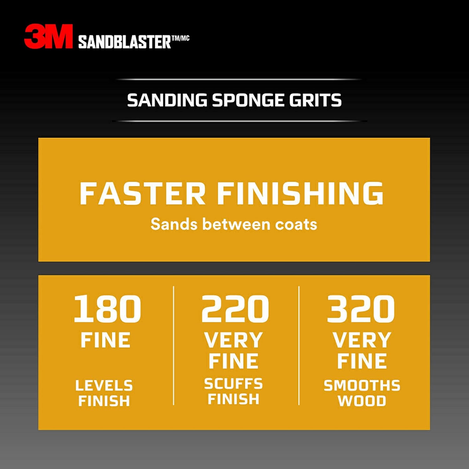Comfortable, powerful-the 3M SandBlaster Advanced Sanding Block Sponge delivers a great sanding experience in the palm of your hand. This durable sanding sponge helps you get the job done fast with premium grits, and the pliable design lets you get into hard to reach places. A unique coating resists clogging for long use, and this sanding sponge is perfect for wet or dry sanding. When your job is complete, simply rinse the sponge and reuse it. Get a professional result with the 3M SandBlaster Advanced Sanding Block Sponge
