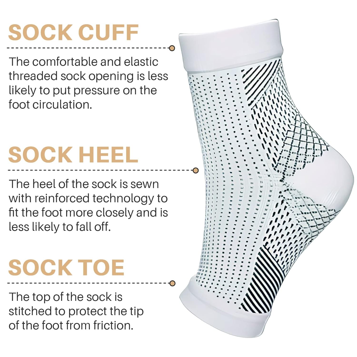 - Please be aware:Our sock provides strong 20-30mmHg to ensure effectiveness.Please make sure to follow our size chart and choose your correct size to ensure your socks are not too tight. Relieves foot pain:The neuropathy socks for Women & Menare suitable for acute and chronic injuries. The thermally active material of the support belt promotes blood circulation in the affected ankle. This warms the area, which reduces the pain in the ankle.which provides ultimate pain relief from a variety of ailments including plantar fasciitis, arthritis, sprains, swelling, tendonitis, muscle fatigue, and other ankle pain.