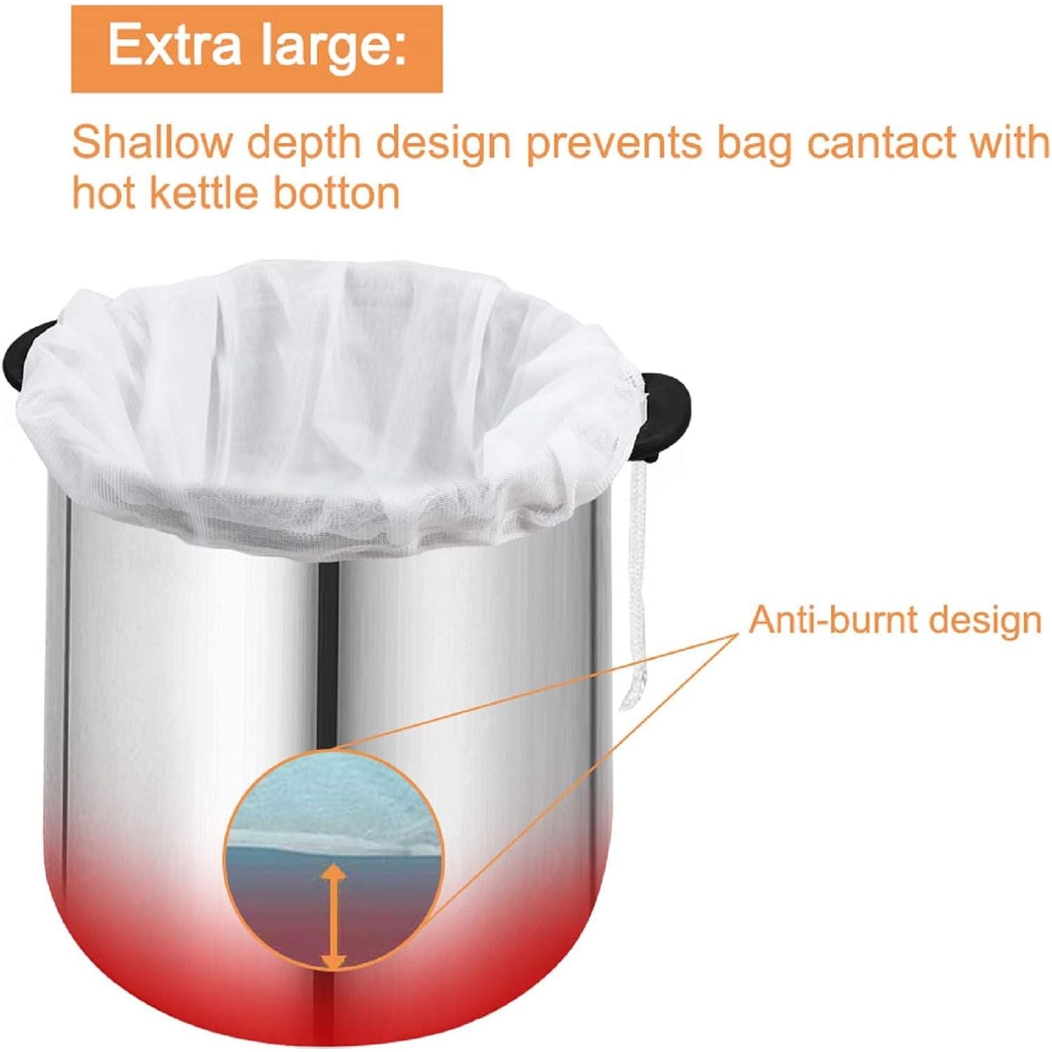 - 3. PERFECT DESIGN: The drawstring with adjustable lock make sure the bag doesn't fall into the pot and stays secure and tight.These clever design is prevents bag contact with hot kettle bottom. Use your existing kettle setup for an easy transition to all-grain brewing, big enough for multiple usages like beer making, wine making, nut milk making, fruit juicing, cold brew coffee, this bag can do what you want.