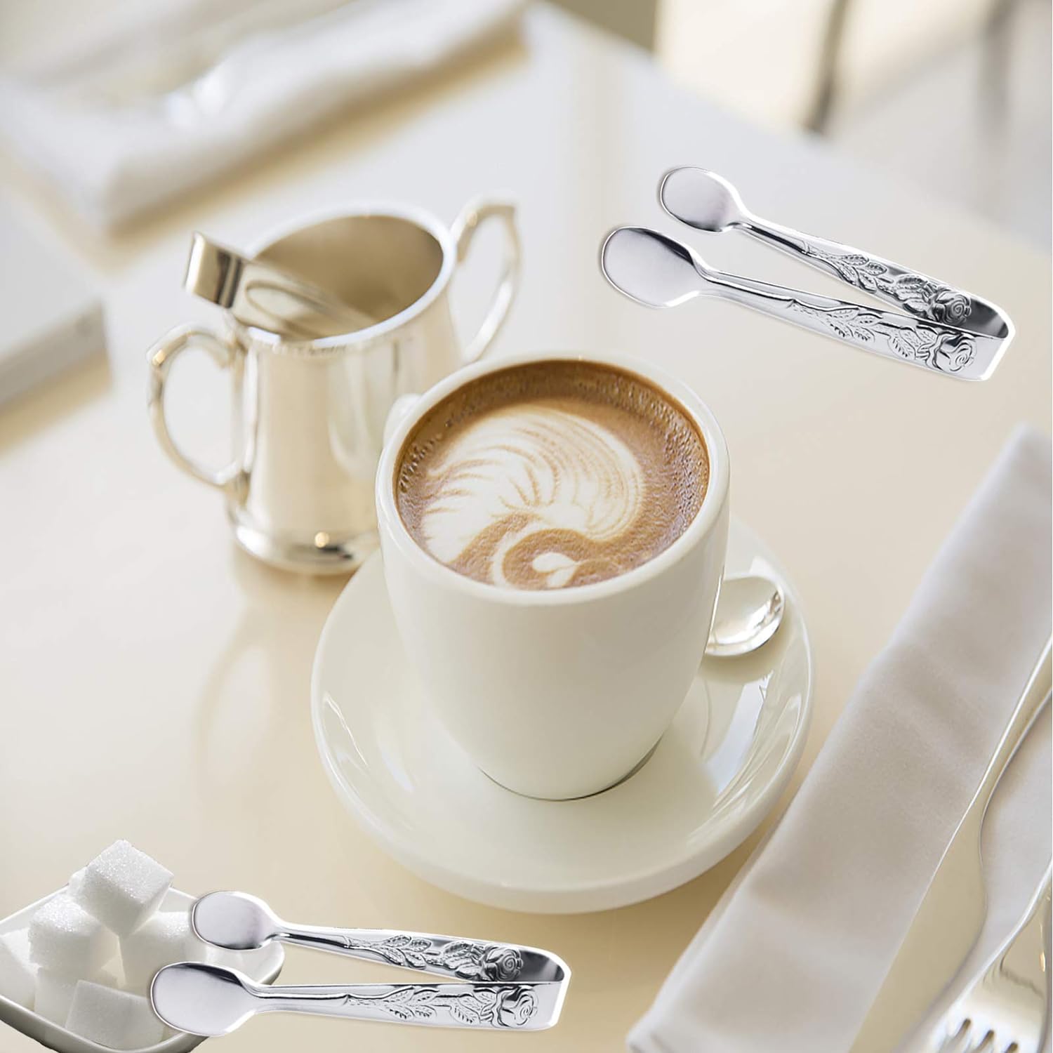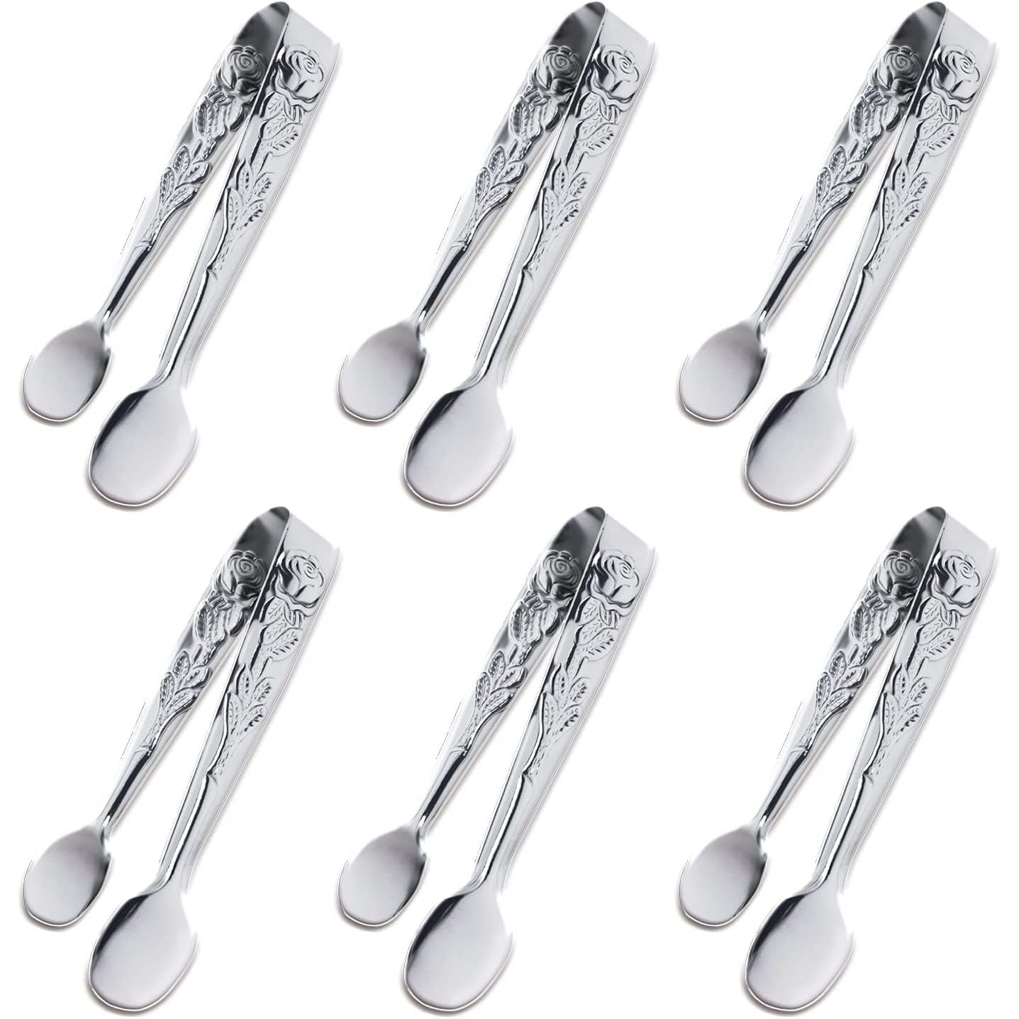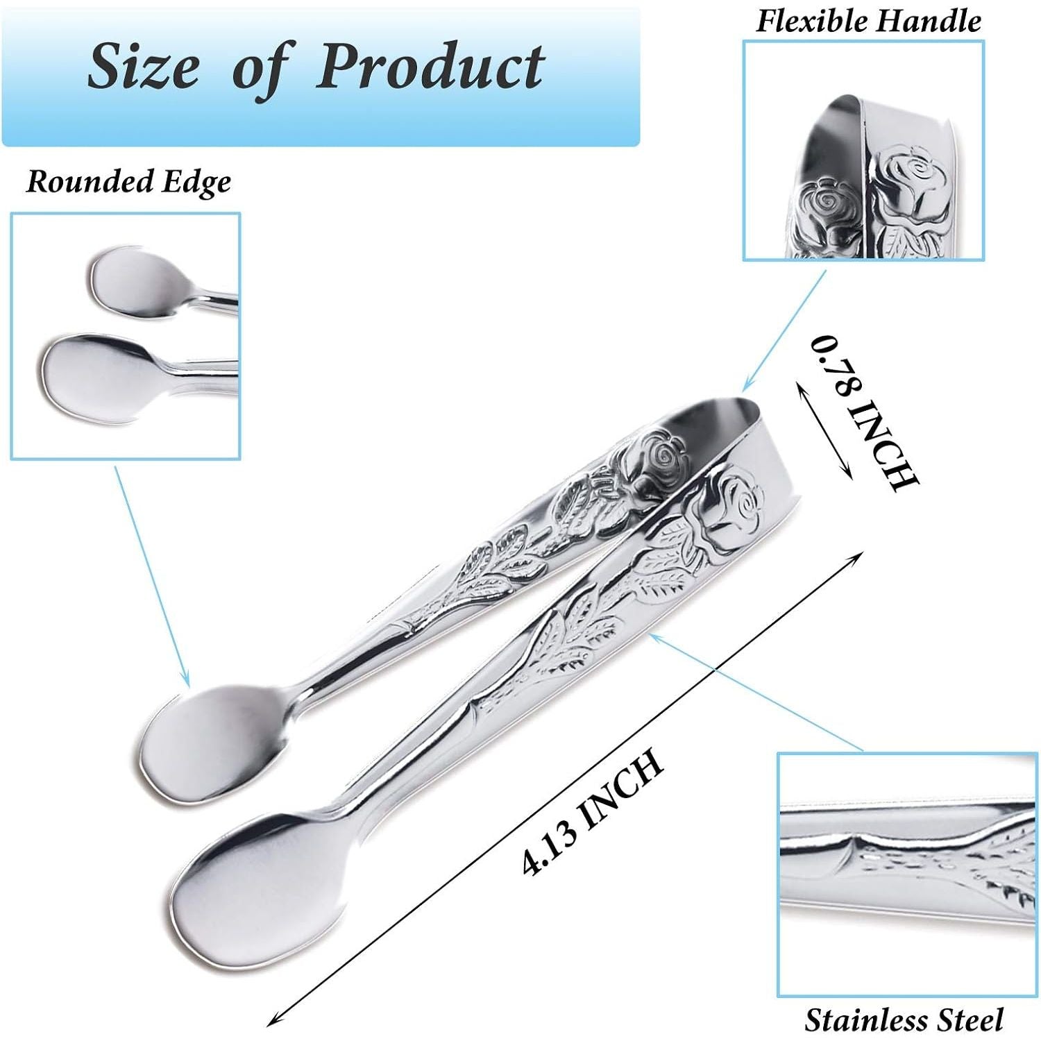 - 3PCS Mini Serving Tongs, 4Inch Rose Stainless Steel Sugar Cube Tongs, Sliver Small Ice Tong for Tea and Coffee Party, Appetizers, Desserts by Sunenlyst (Silver)
