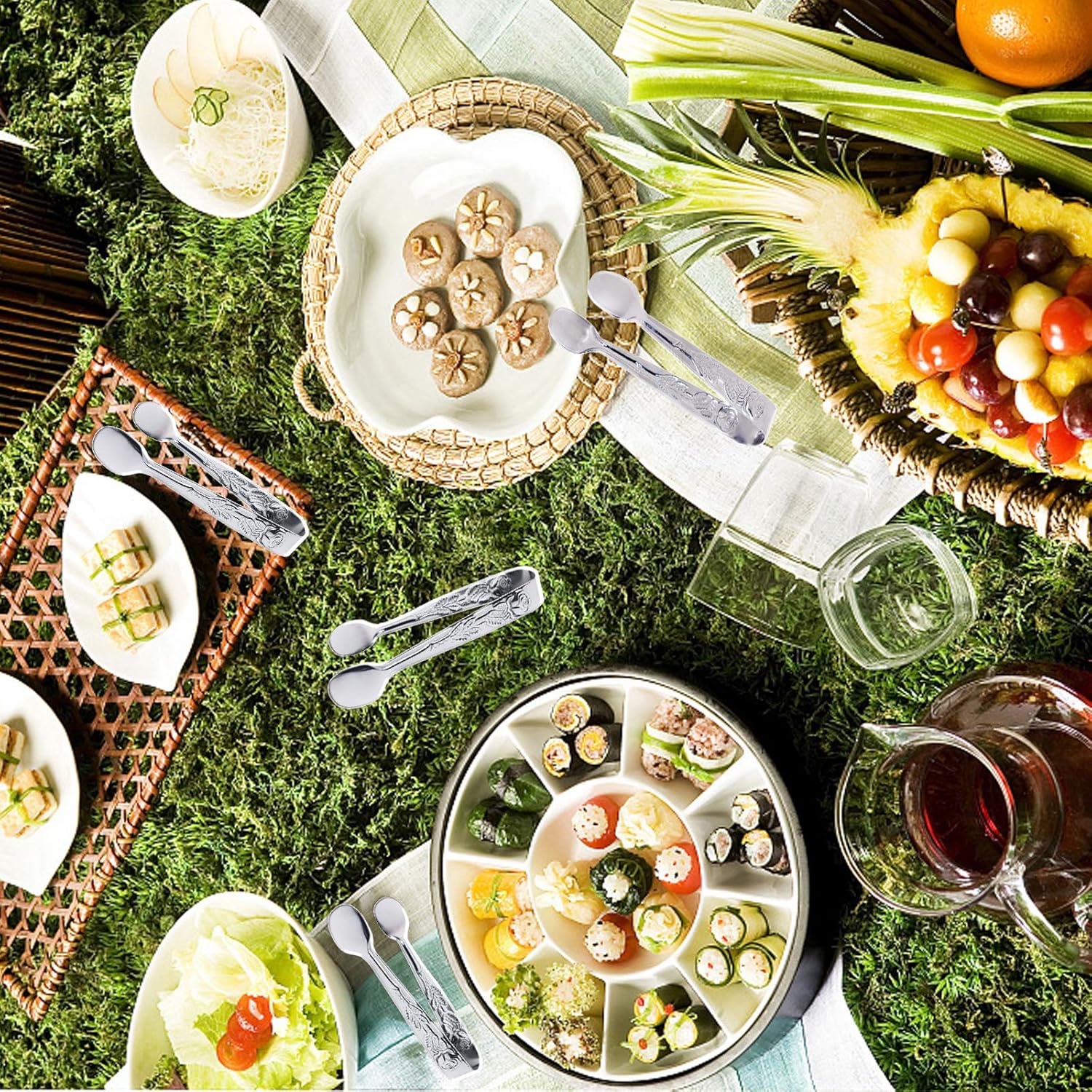 - 【Special Design】Appetizers tongs with classic relief rose pattern design, delicate look and stylish. With mini size and light weight, serving utensil is especially great for outdoor activities to carry in your bag. Mini tongs for candy buffet with elegant classic design also can be a kitchen gadget gift to friends.
