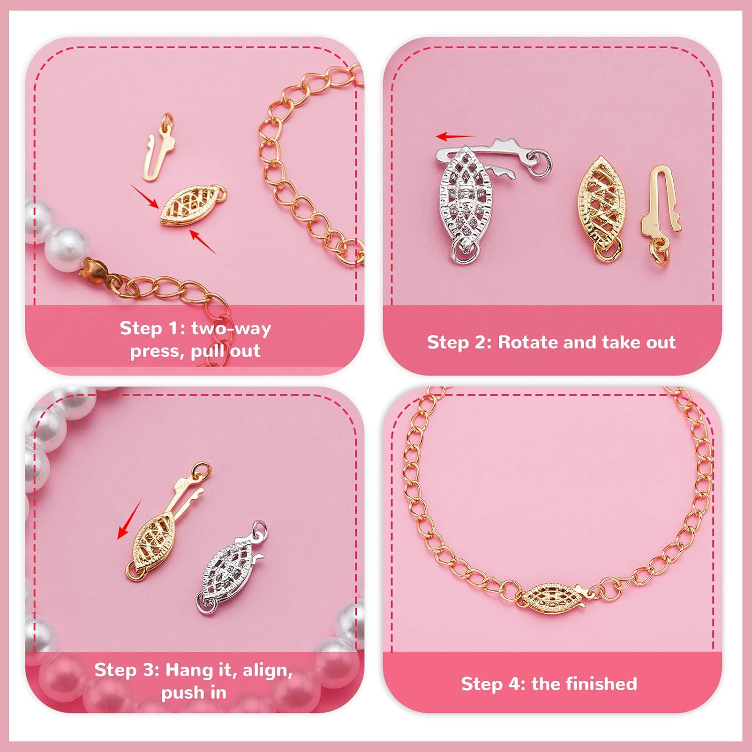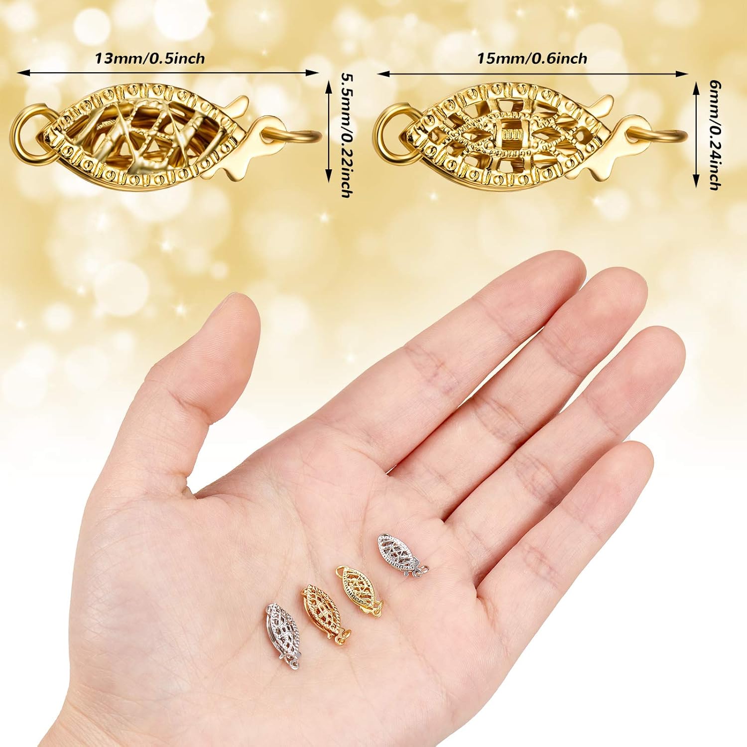 - 4 Piece Pearl Filigree Necklace Clasp Oval Filigree Fish Hook Clasp Jewelry Slide Bracelet Connectors with Storage Box for Layered Necklaces, Jewelry, Crafts Bracelets, 2 Styles and 2 Colors