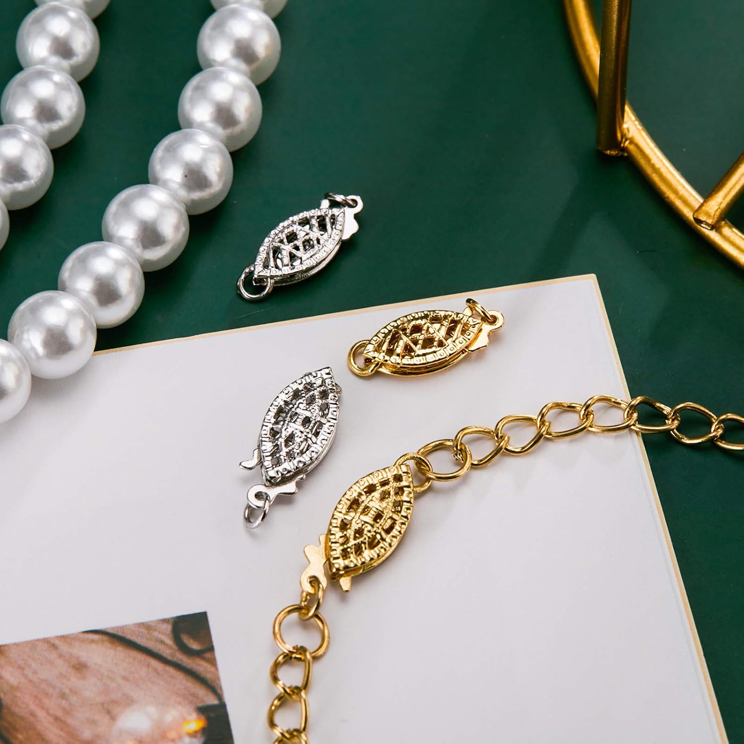 - Elegant outlook: these filigree traditional pearl necklace clasps are designed into oval shape with exquisite craftsmanship, they are traditional style of clasp applied for finishing elegant pearl necklaces and bracelets, making jewelry crafts look more delicate, and they are also sturdy enough to hold any bead strand firmly