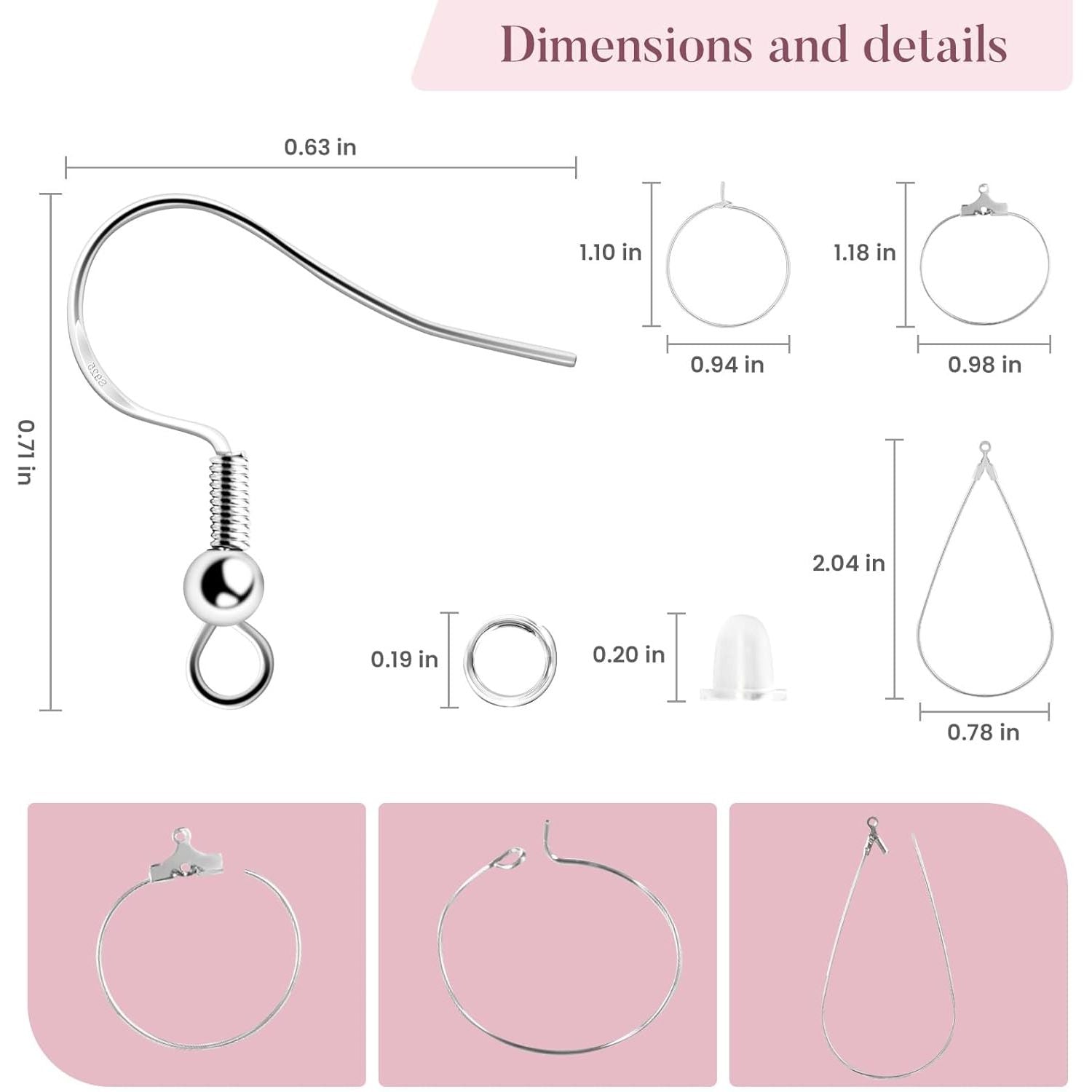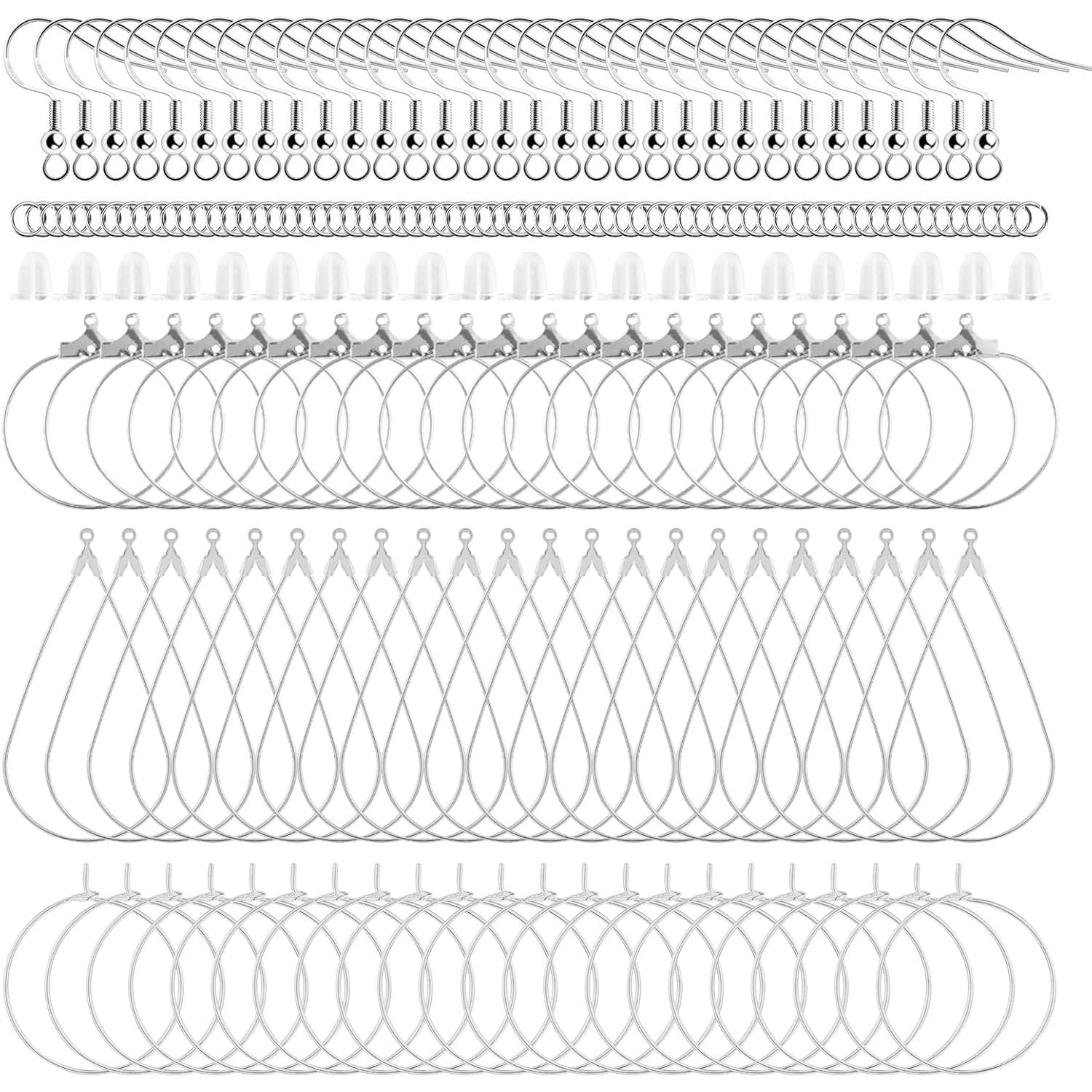 - 400 Piece Sterling Silver Plated Earring Hooks, Hypoallergenic Earrings Making Kit with Beading Hoop Earring Finding Component Accessories, Earring Backs & Jump Rings for DIY Jewelry Craft