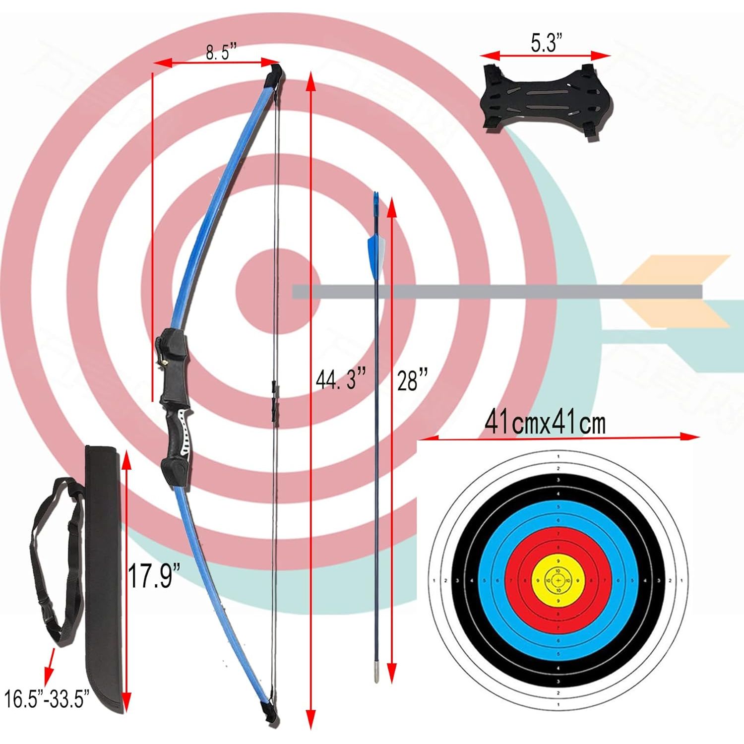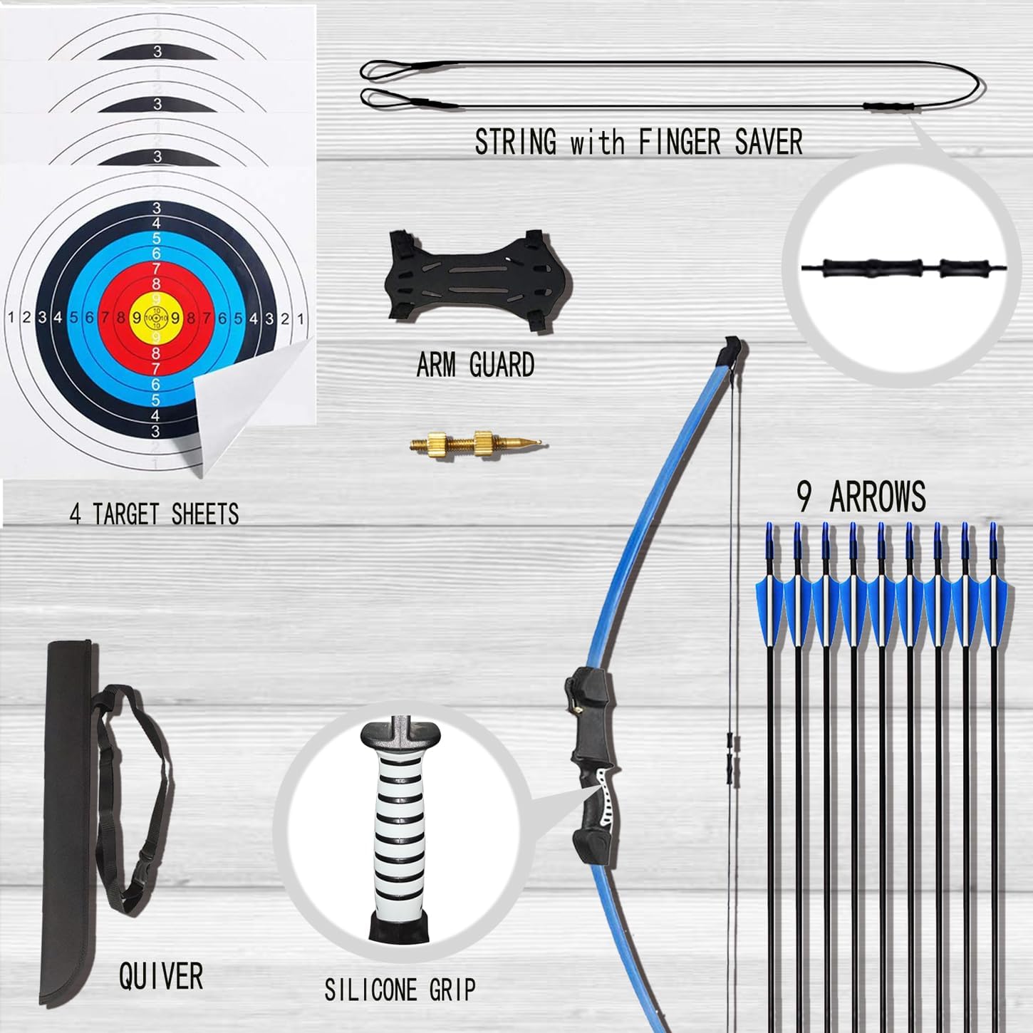 - 45" Youth Bow and Arrows Set for Kids 8-12 Teens Recurve Archery Beginner Gift Longbow Kit, Outdoor Hunting Play Gift Toys, 9 Arrows, 4 Target Face for Backyard Game Age 12-14 14-16