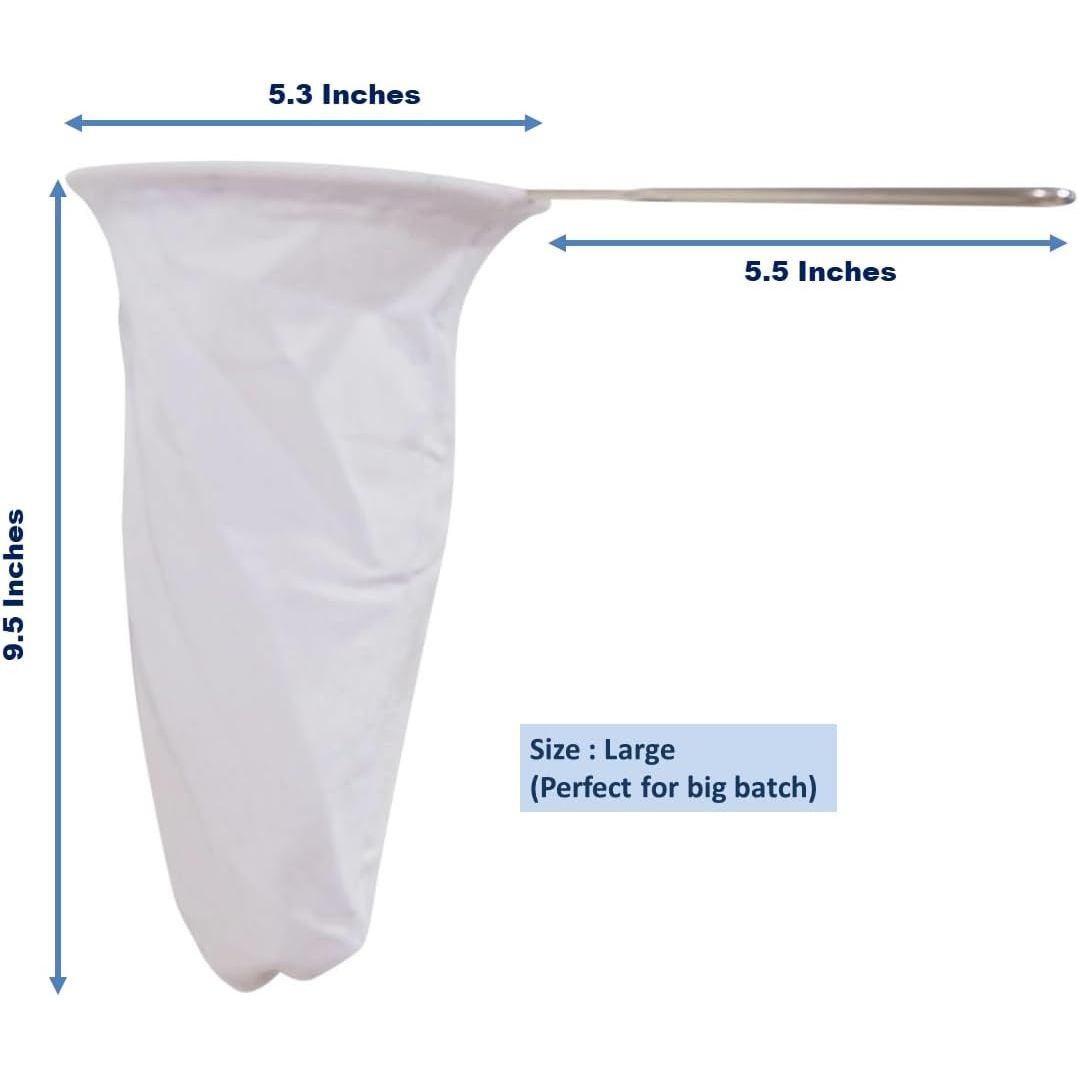 - 5.3” Large Reusable Thai Tea Filter – Traditional Cloth Strainer with Metal Handle for Tea, Coffee, Coconut Milk, Almond Milk, and Juice