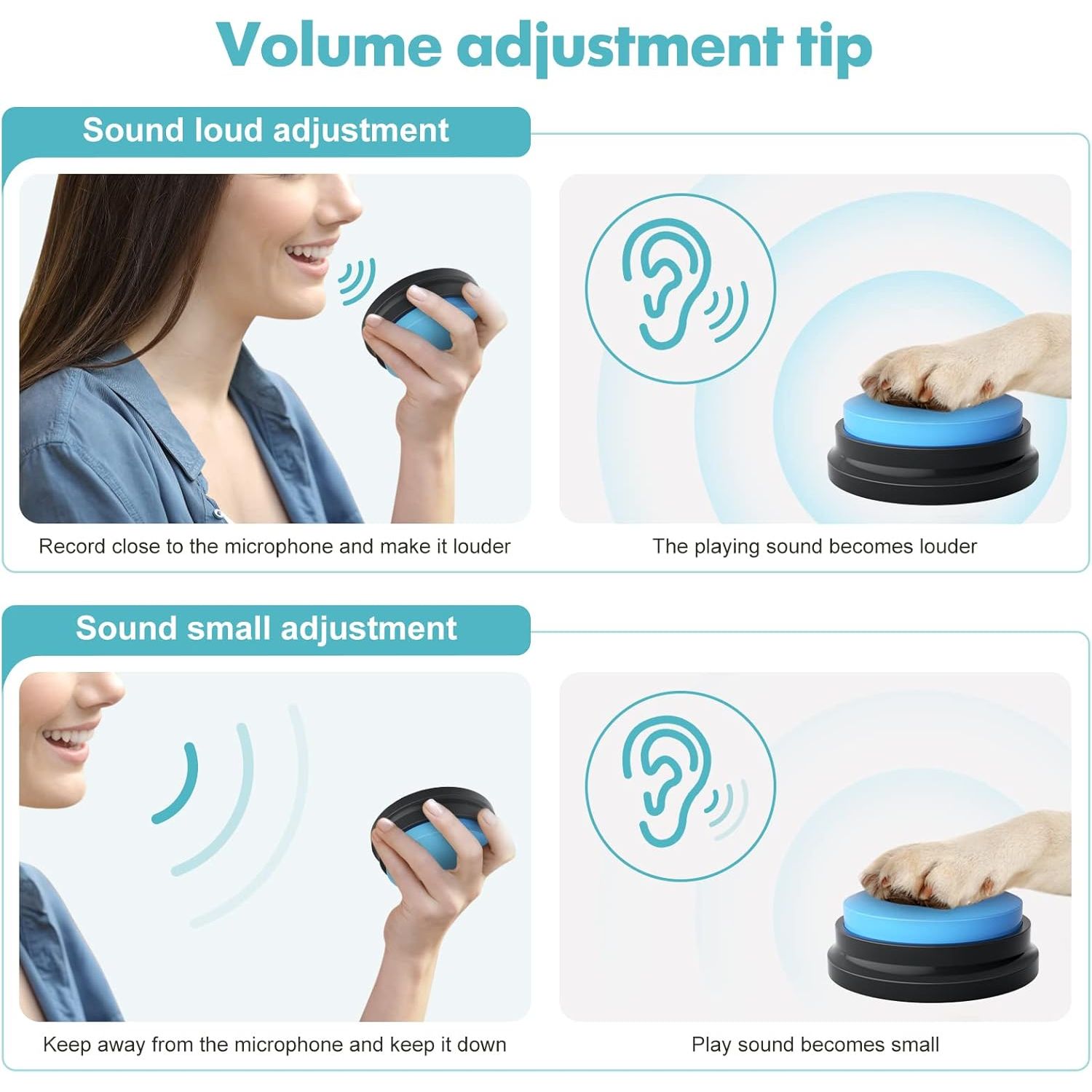 - 🐾【Dog or Cat Training Buttons】: Pet training requires patience, and these buttons are no exception. It's recommended to give your pet repeated training. You can record up to 20 seconds and customize the content you want to train.