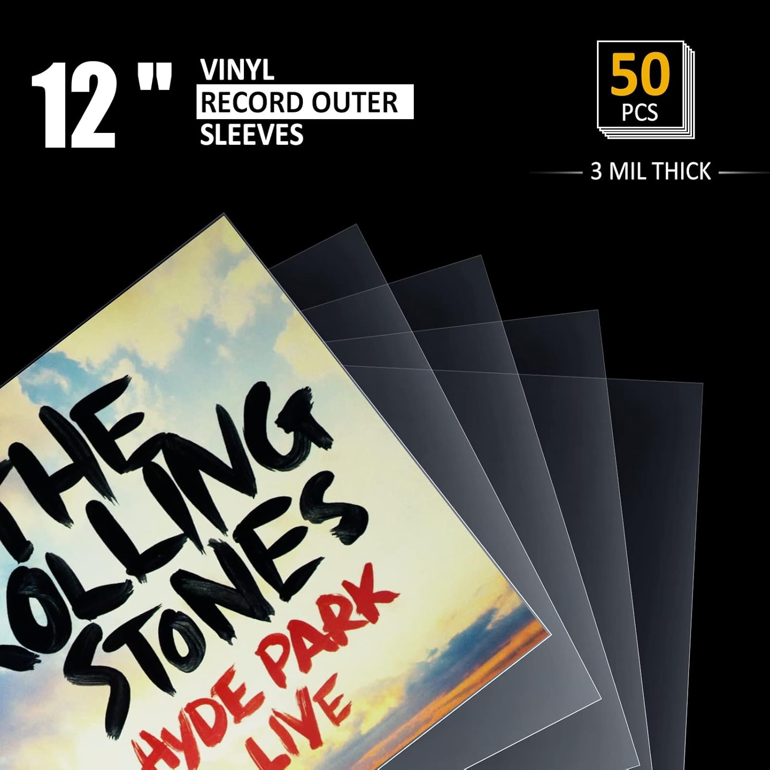 - 50PCS 12" Vinyl- LP Record Outer Sleeves, Durable & Wrinkle Free, High Clarity, Archival Quality Polypropylene, 3 mil Thick, 12.75" x 12.75"