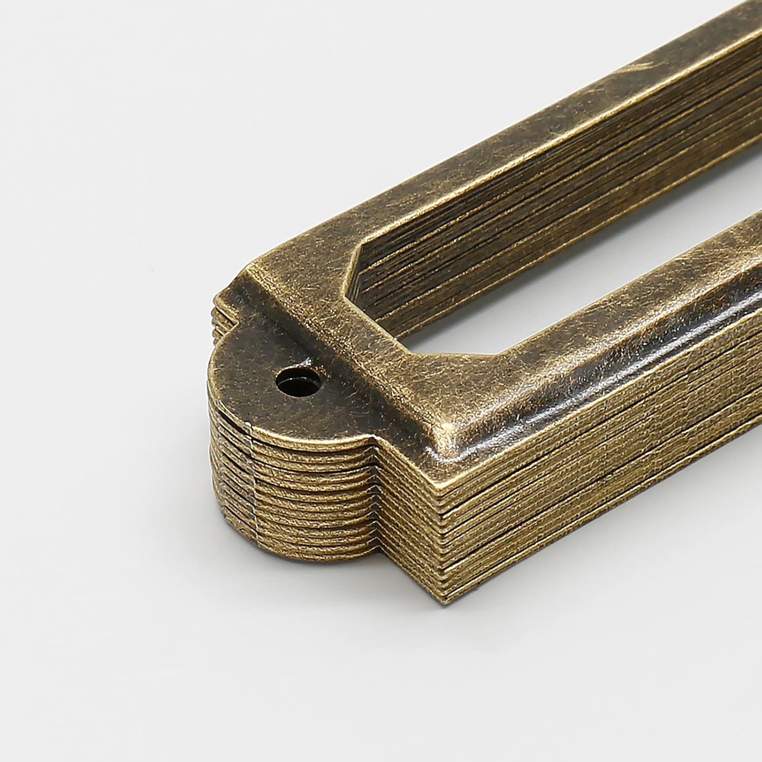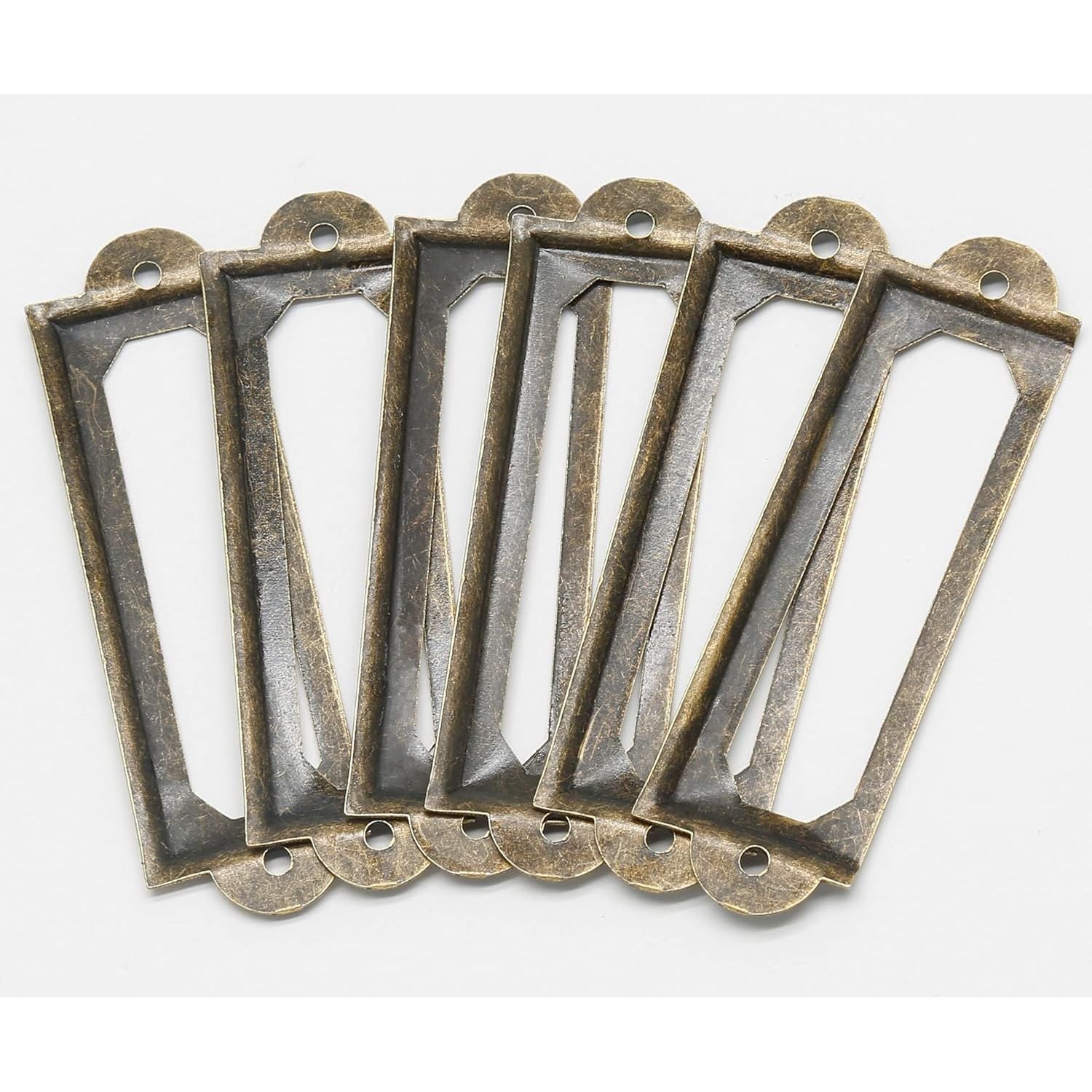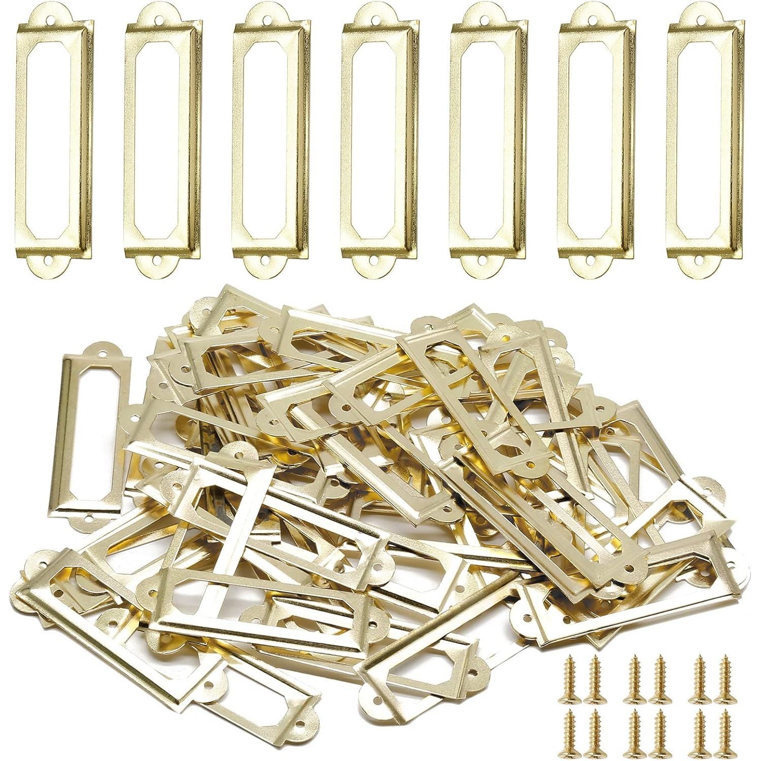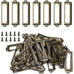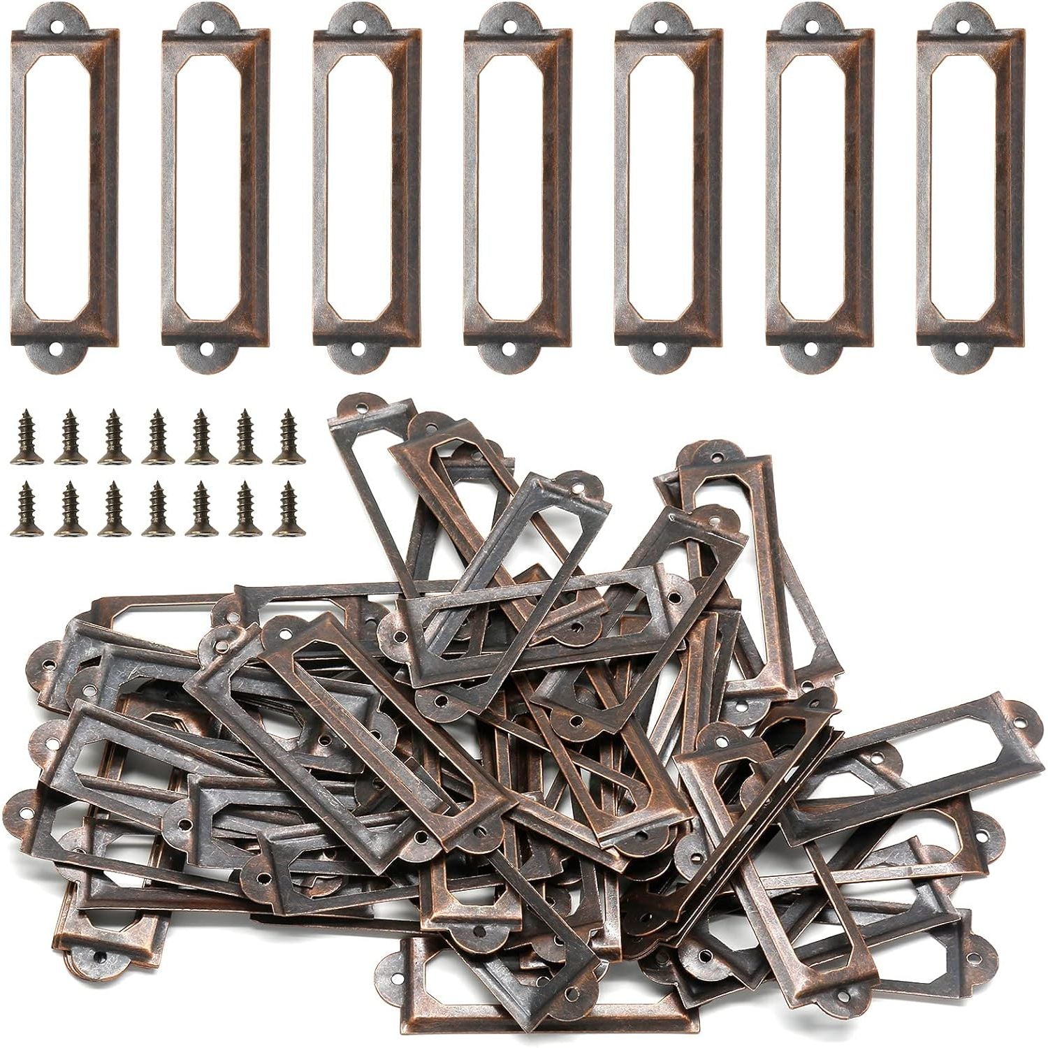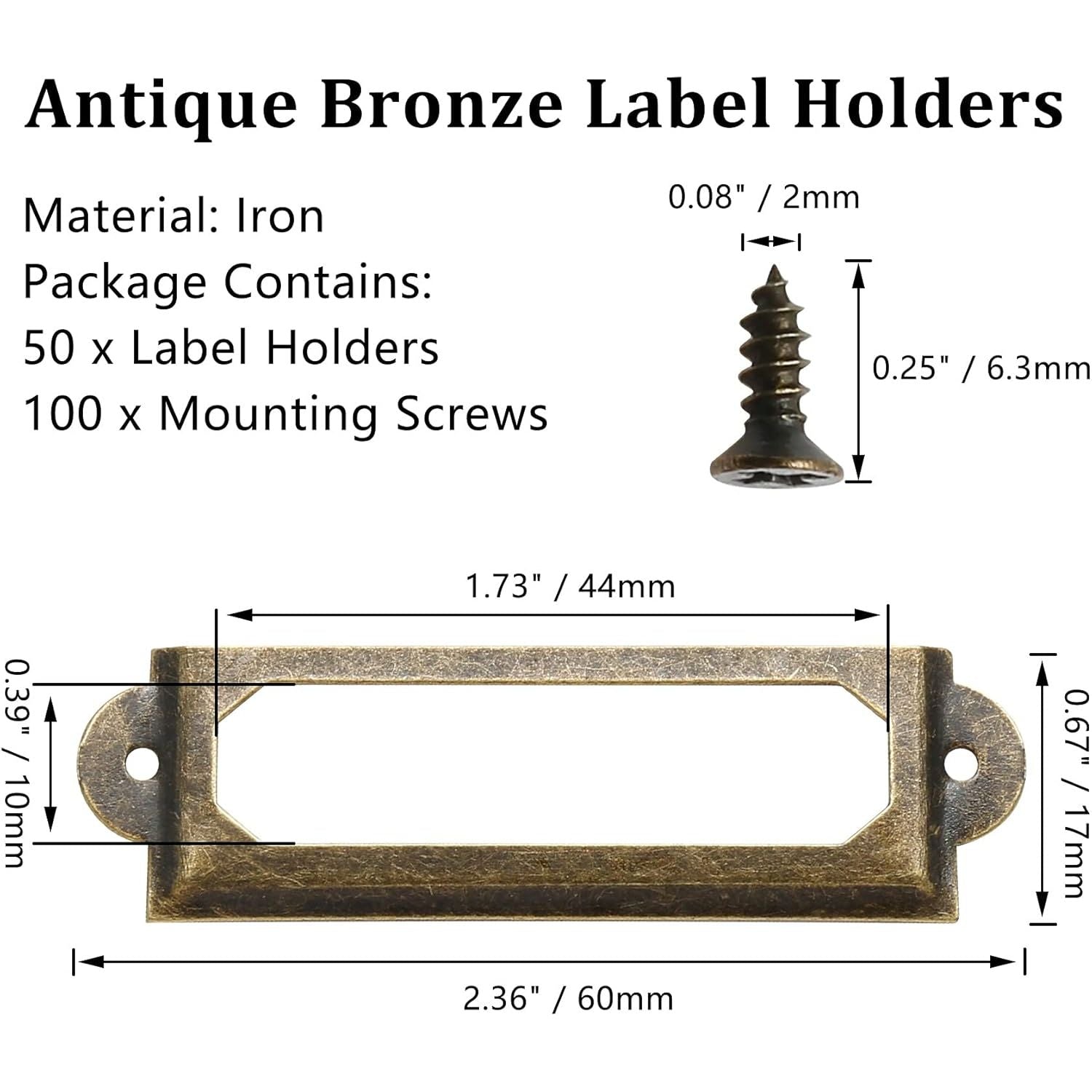 - 50Pcs Metal Library Label Holders, File Cabinet Label Frames with Screws, Card Tag Label Holder for Office Drawers Shelves (Antique Bronze, 60x17mm)