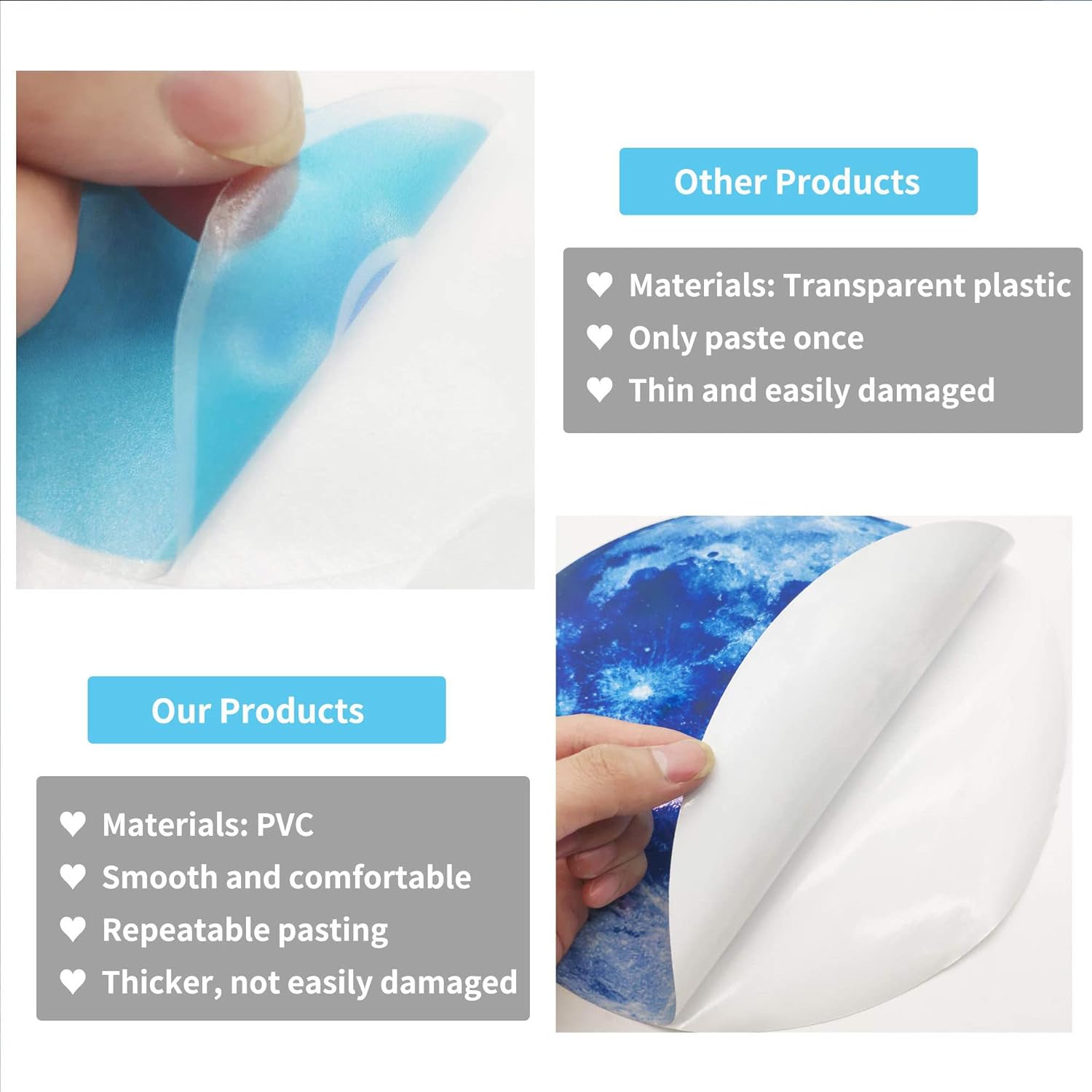 - Sky Blue Moon and Stars,Solar System Decoration Design:High-quality stars and a full moon can help you create the more realistic star gazing experience. Place it under a light source to absorb light for a while, it will glow in the dark. The natural flashing starry sky adds charm to any room in your home