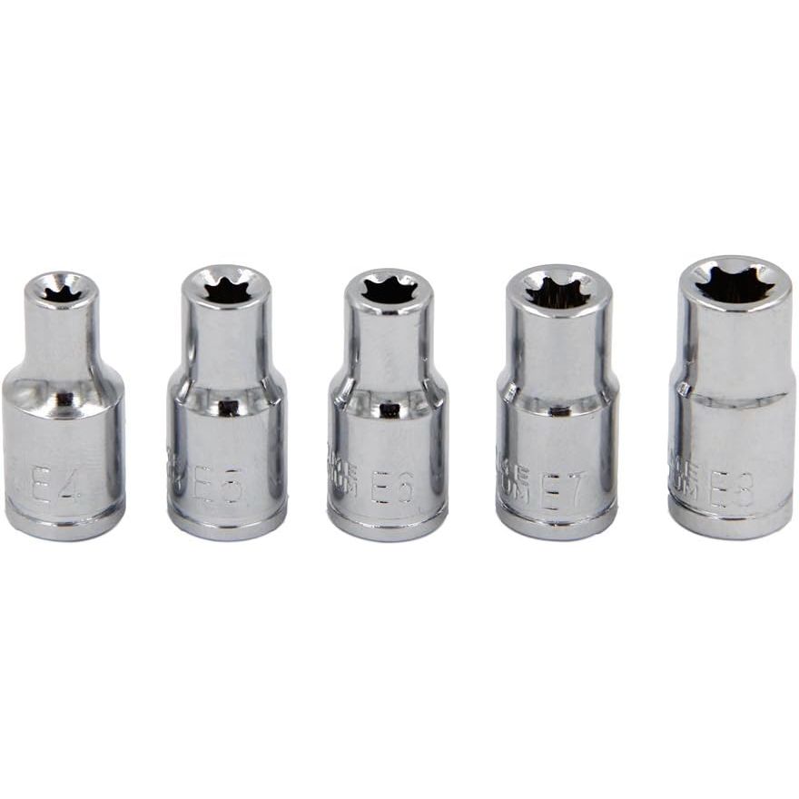 - 5Pcs E Torx Star Female Bit Socket Set 1/4" Drive E4 -E8