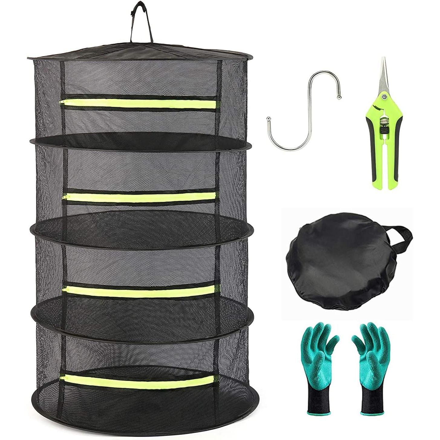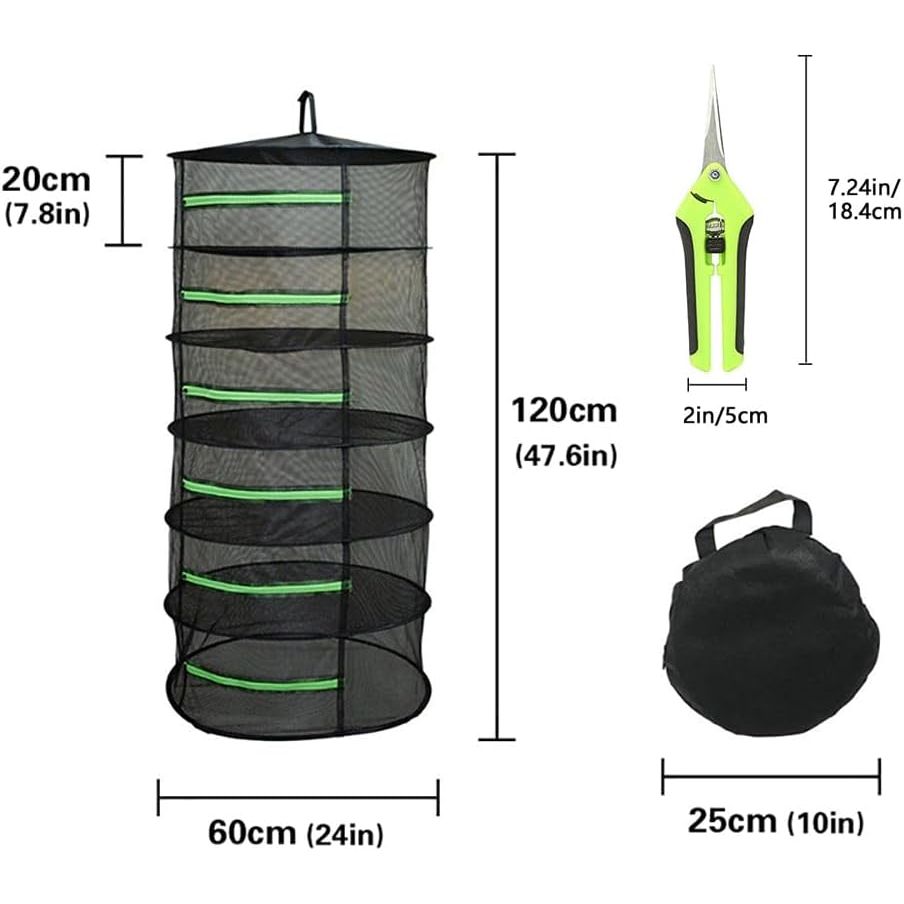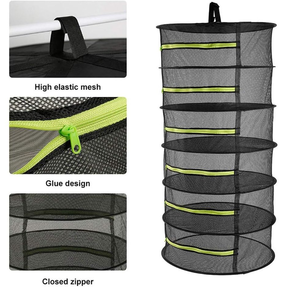 - 6-Layer Herb Drying Rack, 2ft Plant Hanging Mesh Dry Net with Green Zippers and Bonus Hook